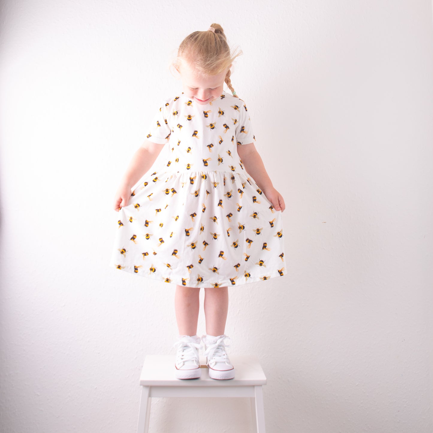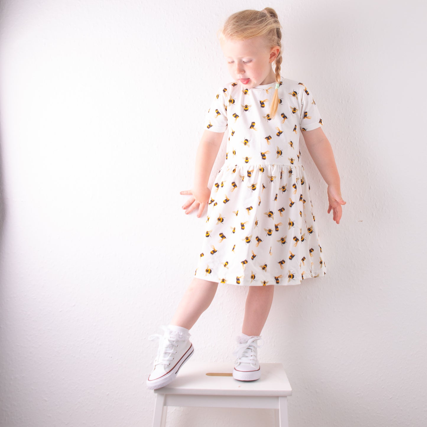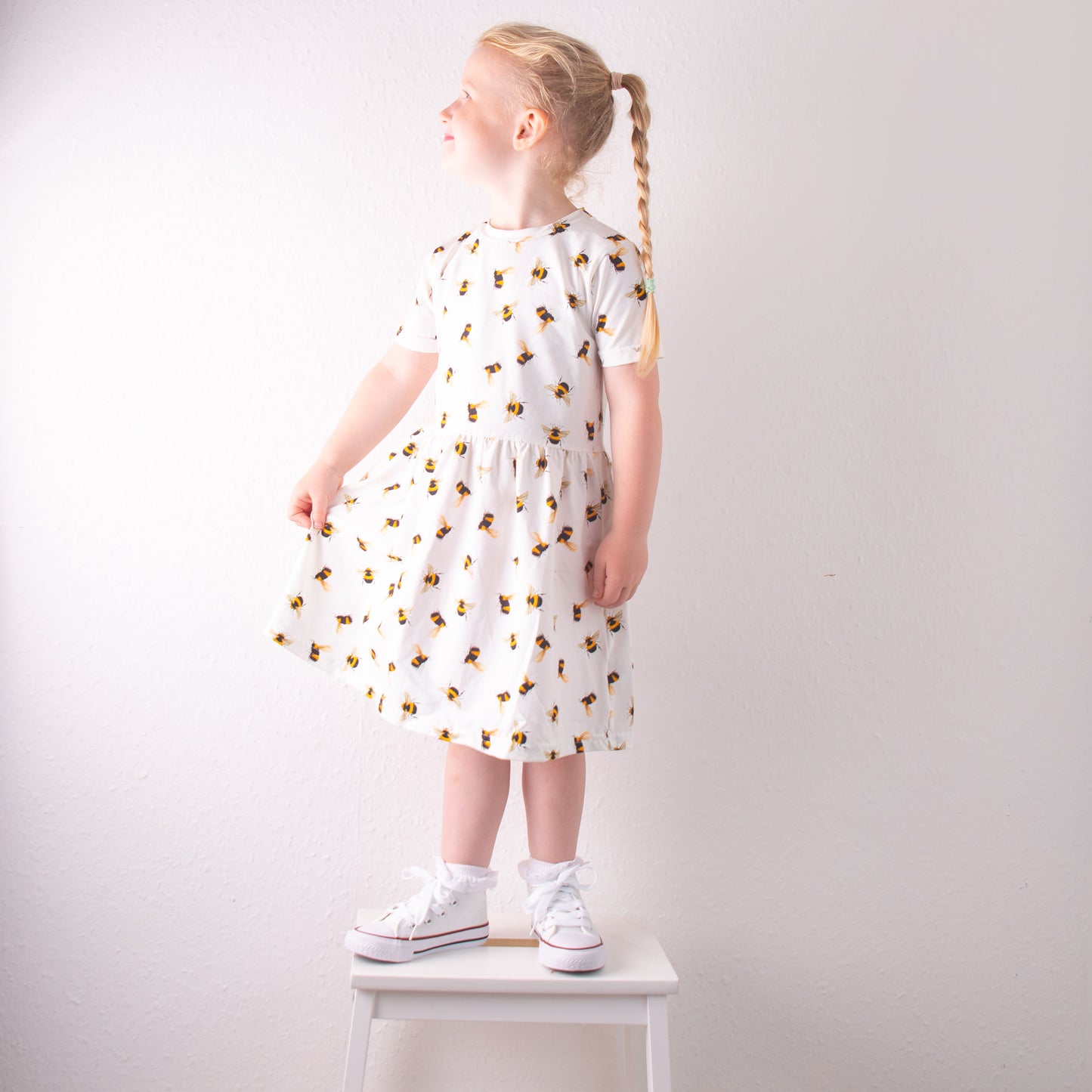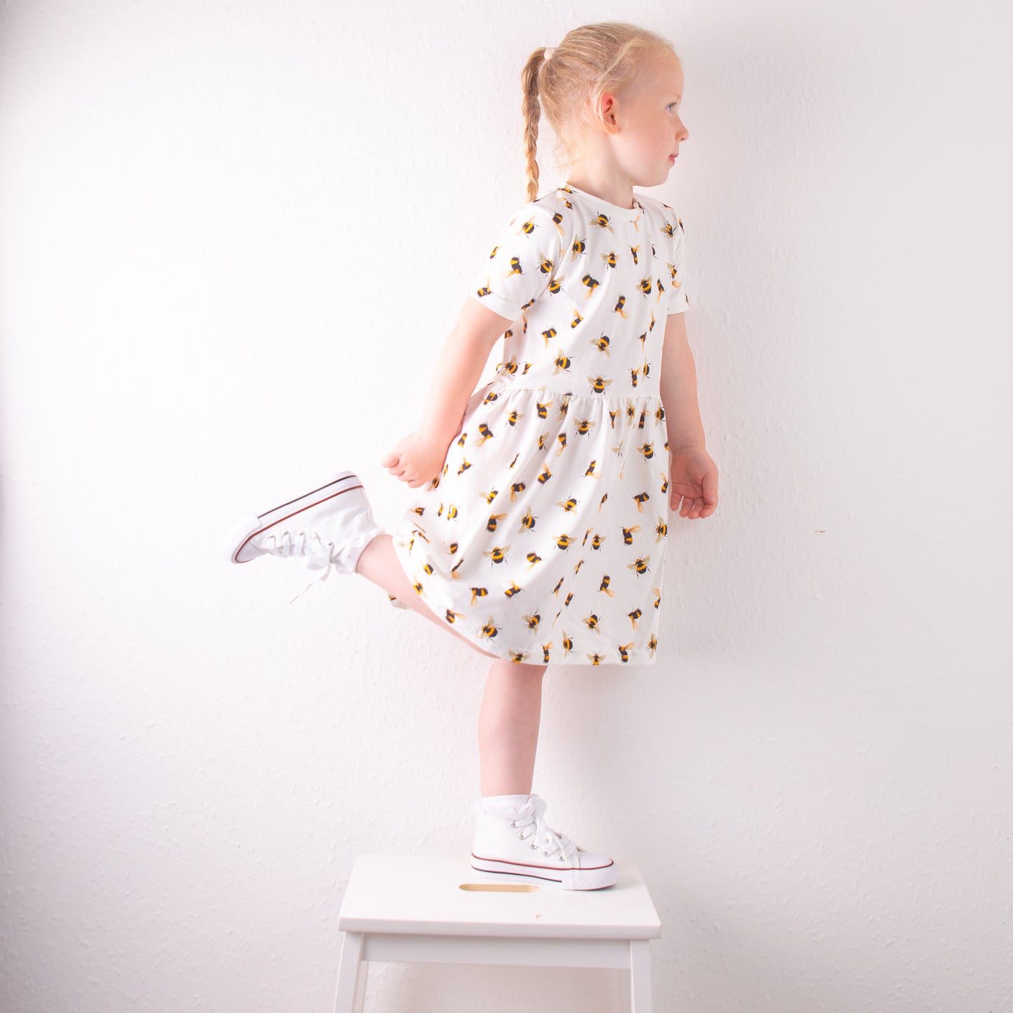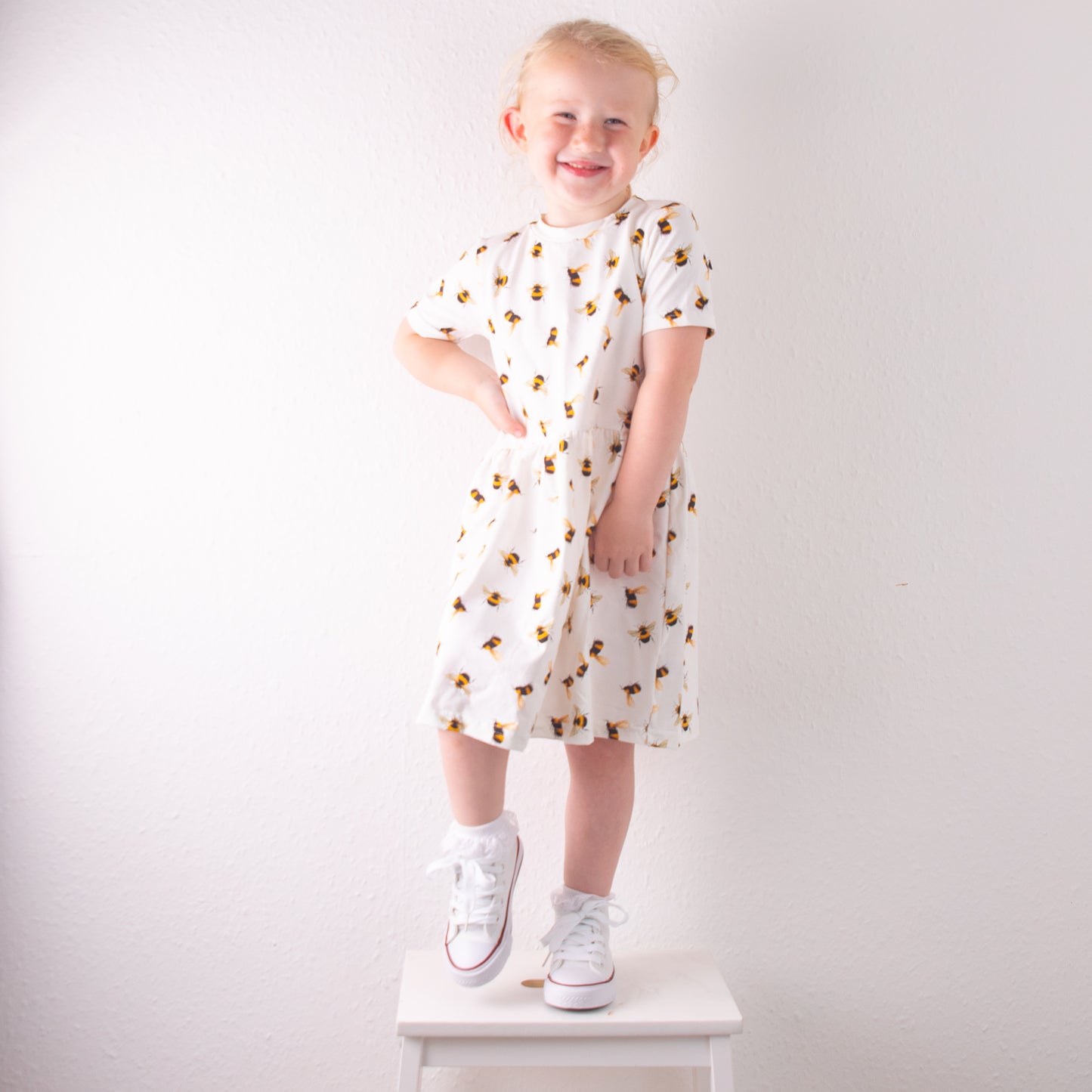 Regular price £15.00Our new Bee Print Dress is made in the UK from 95% Cotton and 5 % Elastane Jersey.