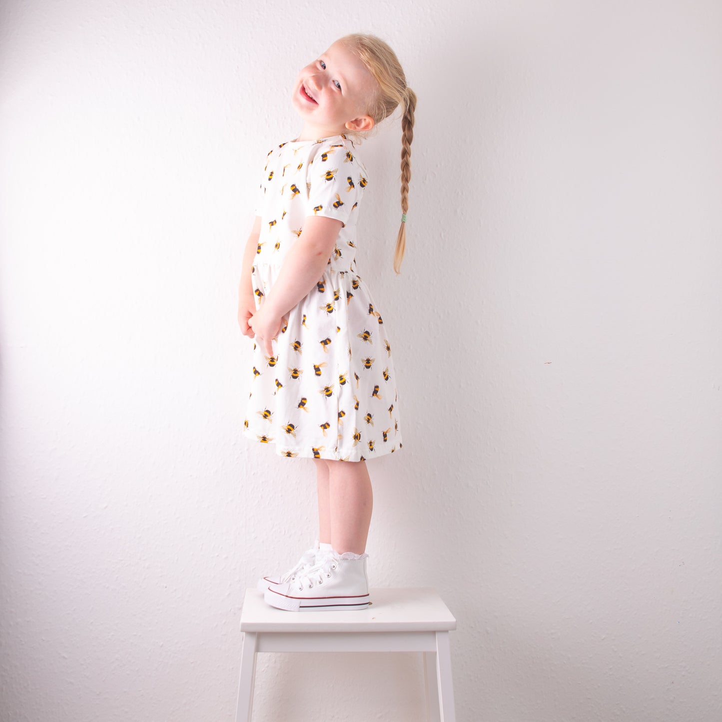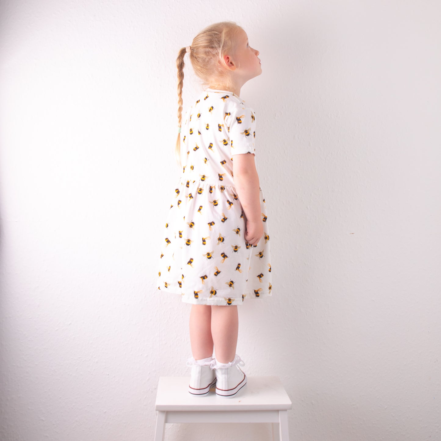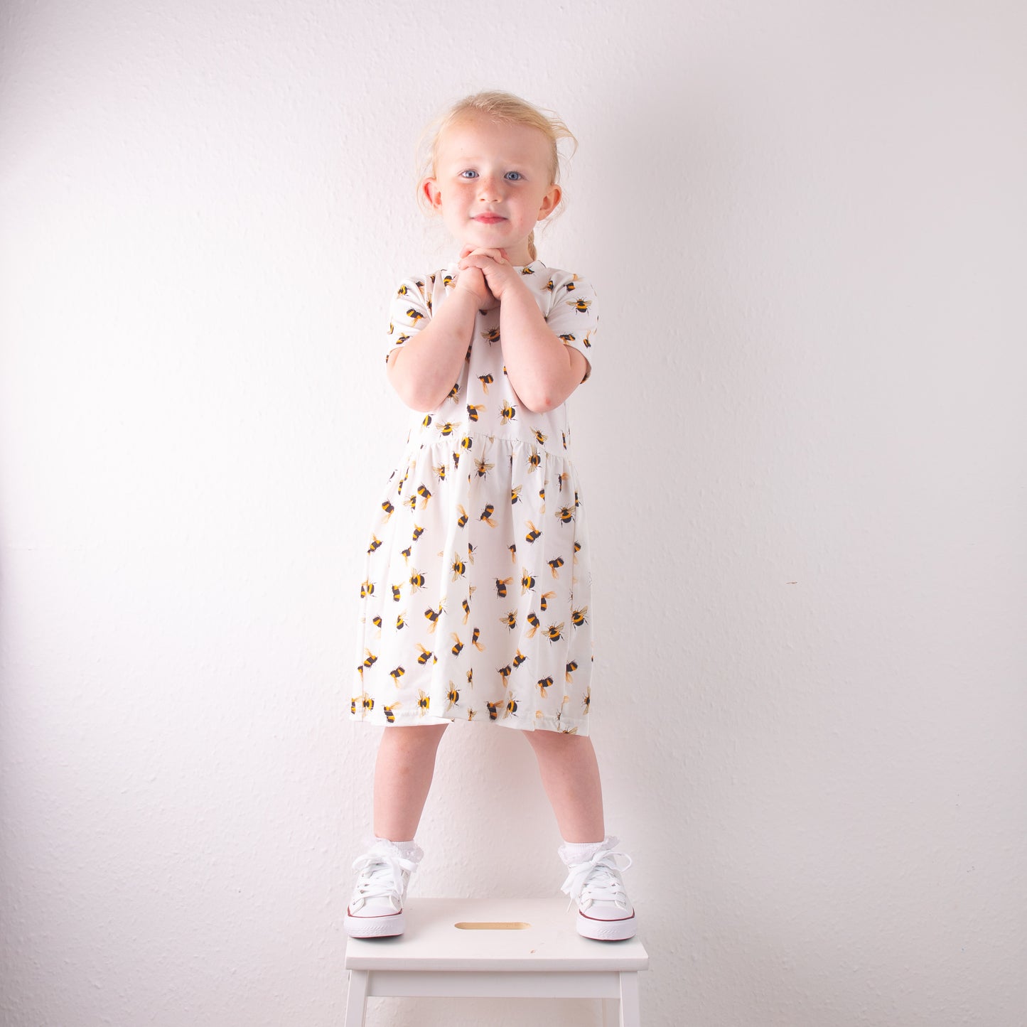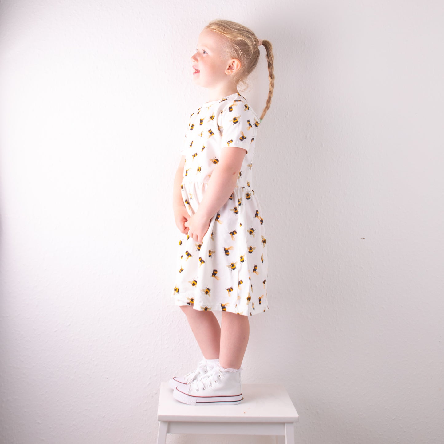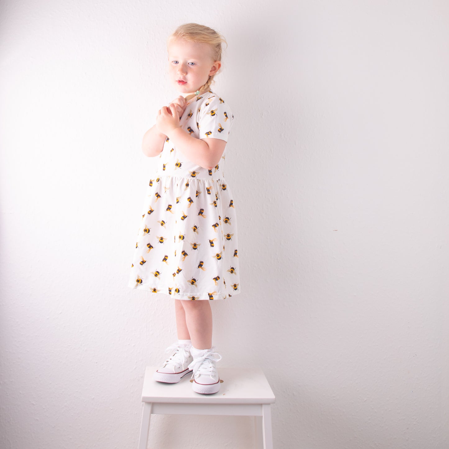 Regular price £15.00Our new Bee Print Dress is made in the UK from 95% Cotton and 5 % Elastane Jersey.