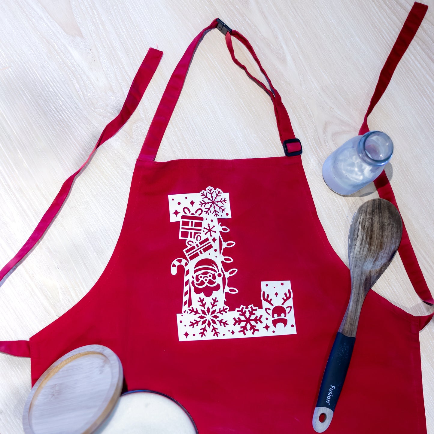 Add Red Christmas Inital Apron to the cart