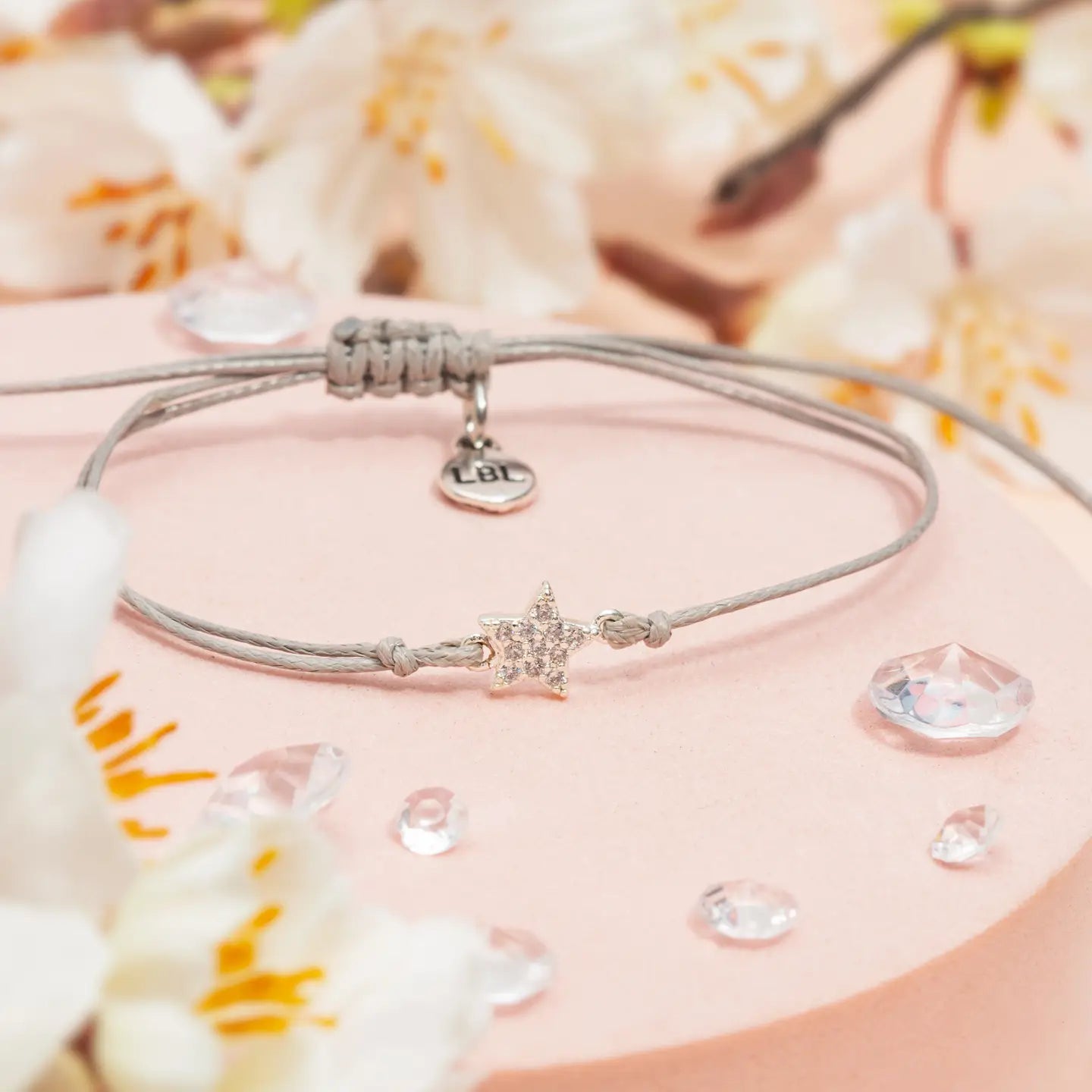 Silver-tone star charm with sparkly detailing Grey polyester cord with adjustable sliding knot One-size-fits all – adjustable up to approx. 28cm Zinc alloy charm, polyester thread