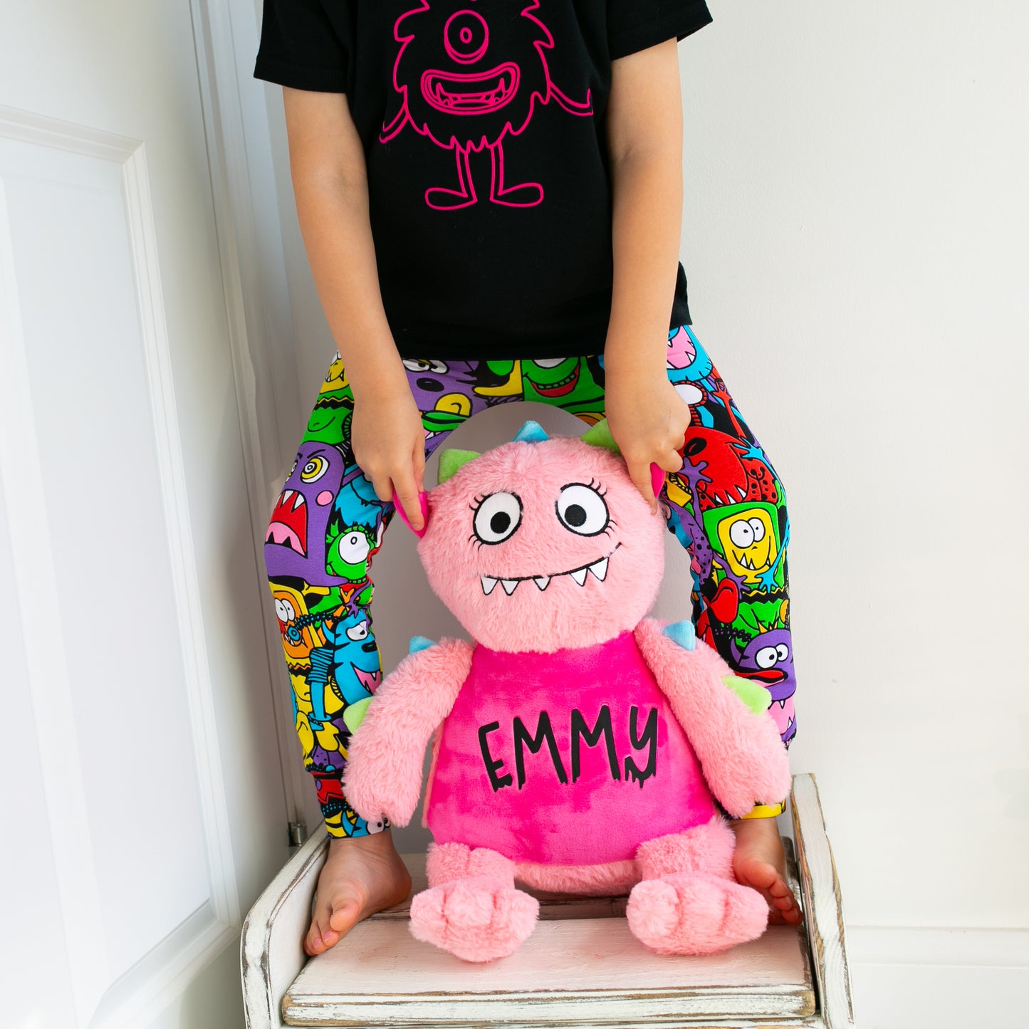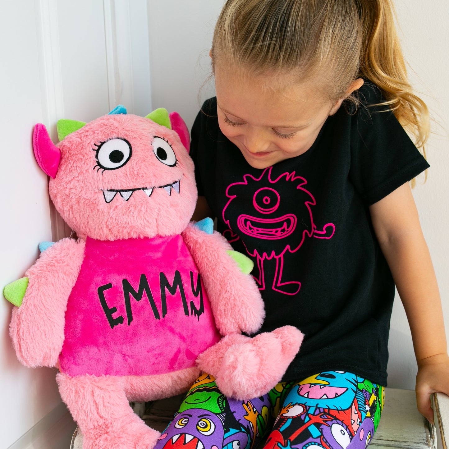 Meet our friendly Pink Monster Teddy — a cuddly companion that’s big on personality and perfect for hugs. Each one can be personalised with a name printed carefully across its tummy, making it a truly special gift for any child.