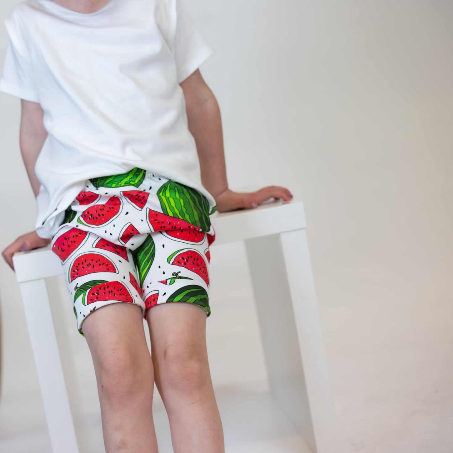 Our Melon print Shorts are made in the UK from 95% Cotton 5 % Elastane Jersey.