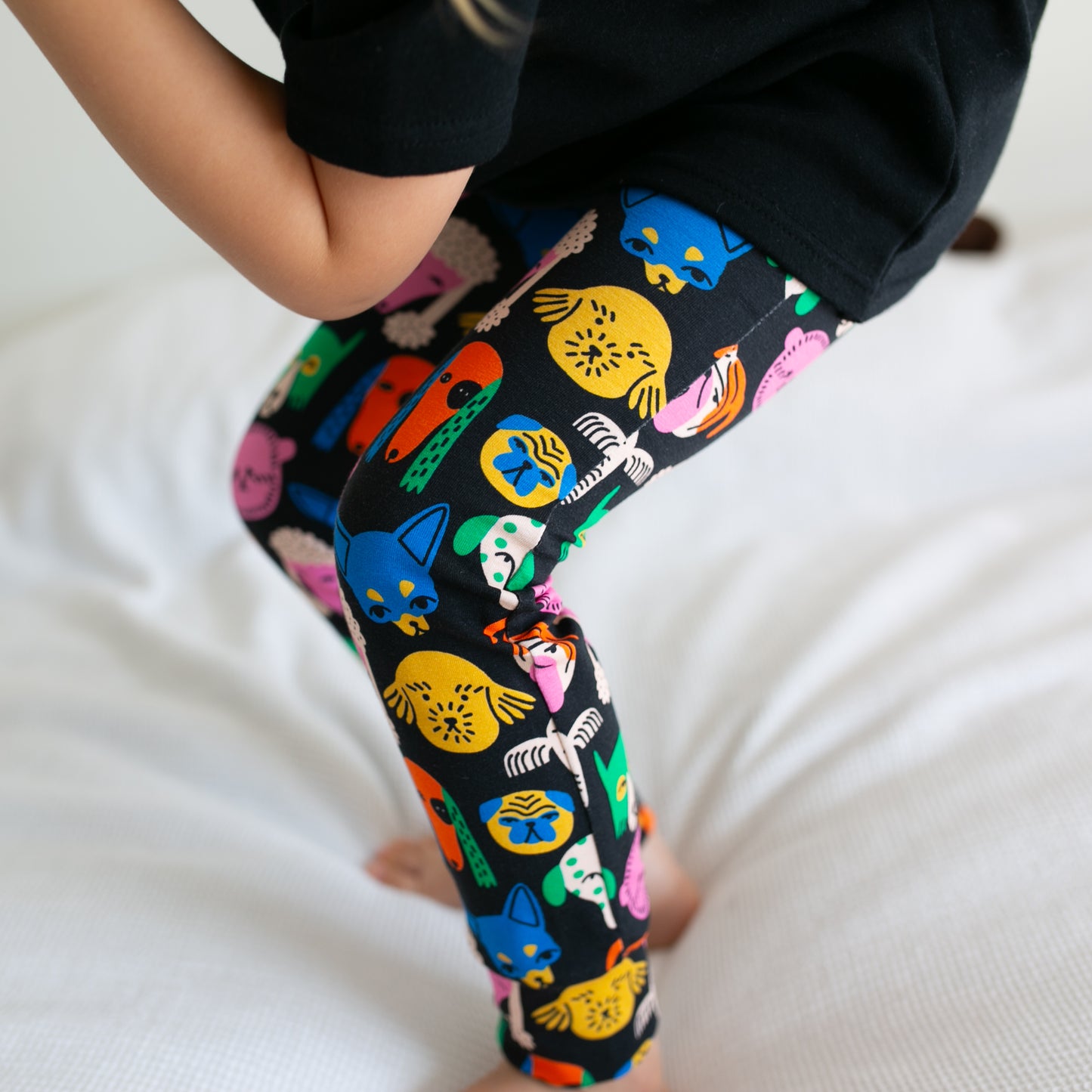 Fred & Noah baby leggings feature an enclosed non roll elasticated waist and are available in sizes 0-6. ( Premature sizes are available upon request ) The leggings also feature a reversible ankle cuff which can be turned up for shorter babies whilst also keeping their little socks on .All of our styles are cut for both disposable and cloth nappies and can be mixed and matched with our range of hand printed vests and T shirts .