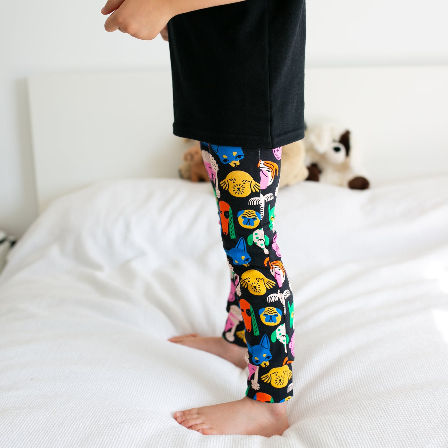 Sizes 4-5 and 5-6 are a different cut to our baby and toddler leggings with no side seam on the legs.