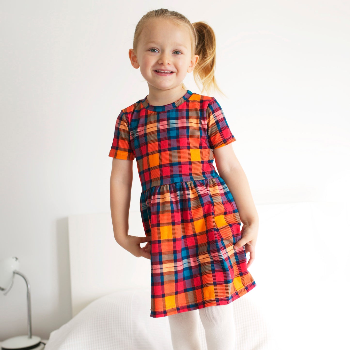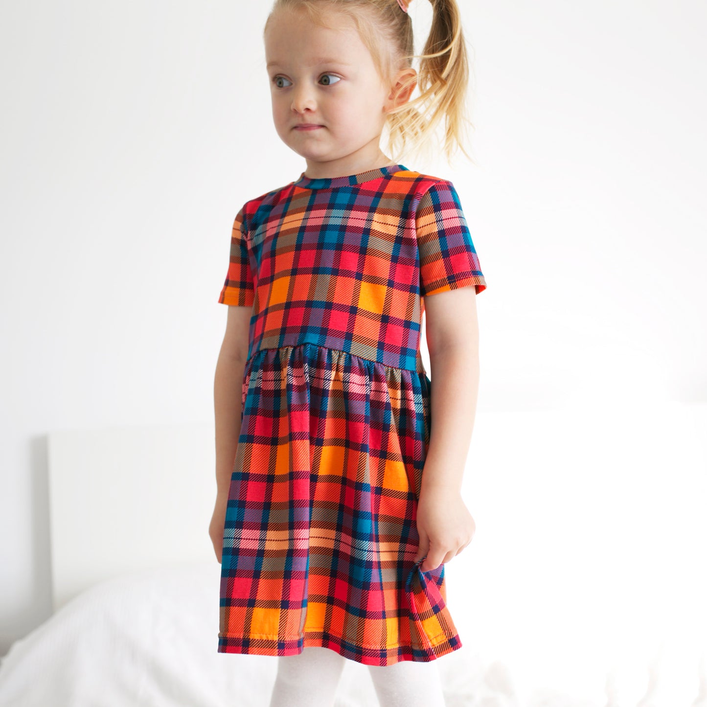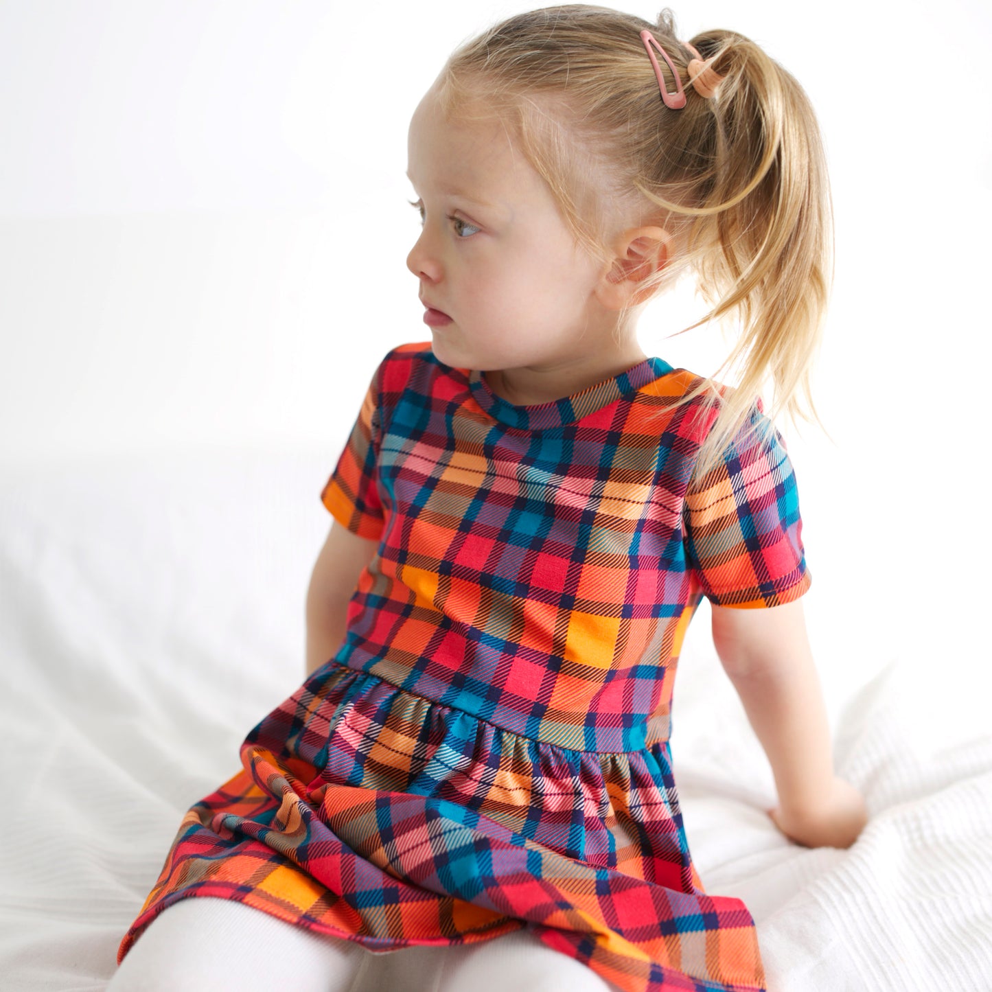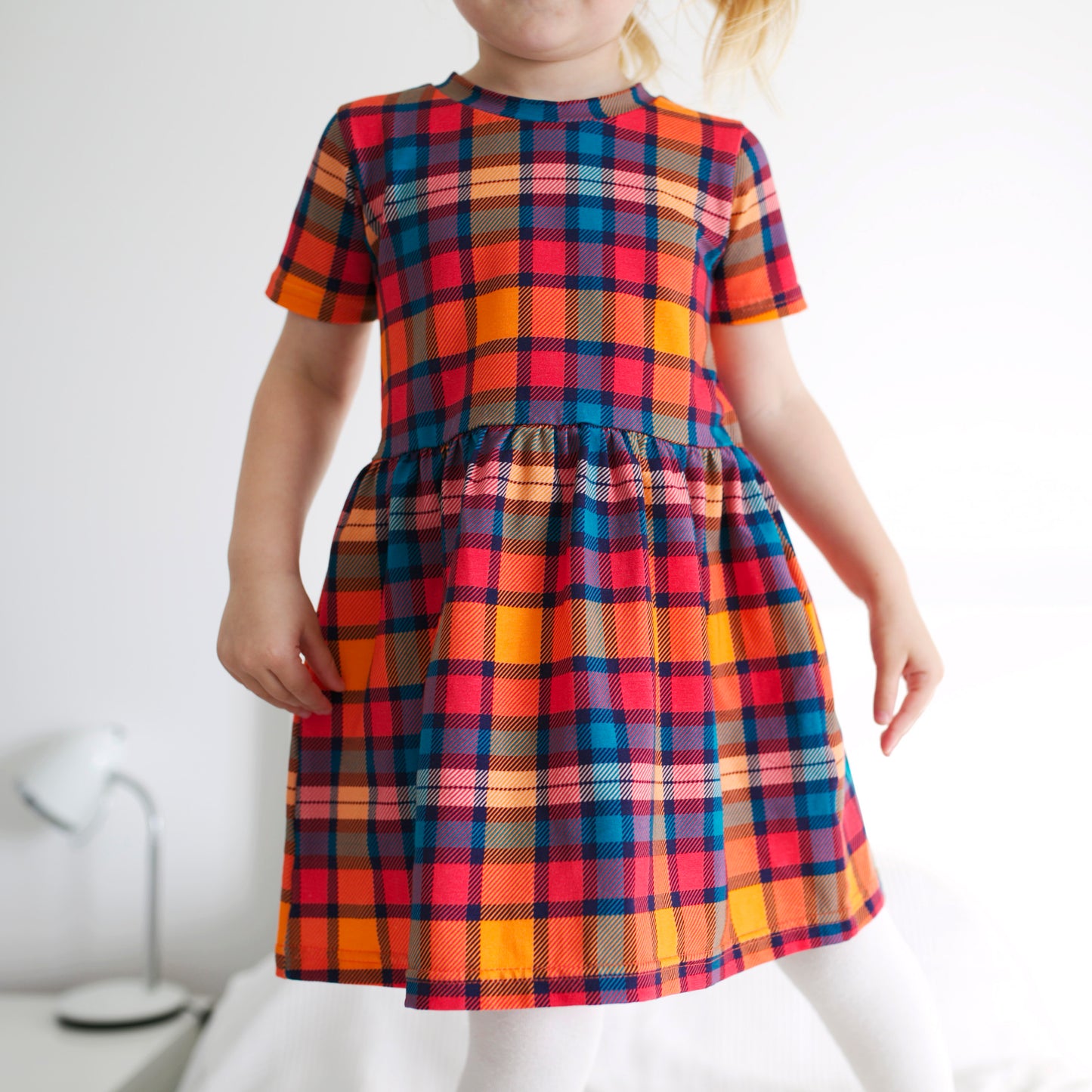 Regular price £17.00Our Sunset Tartan dress is made in the UK from 95% Cotton 5 % Elastane Jersey.