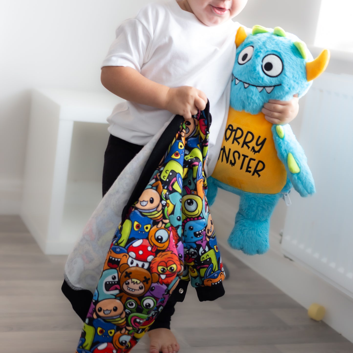 Our super soft Monster print has been designed and made in here in England and will prove to be a wardrobe staple for your little one