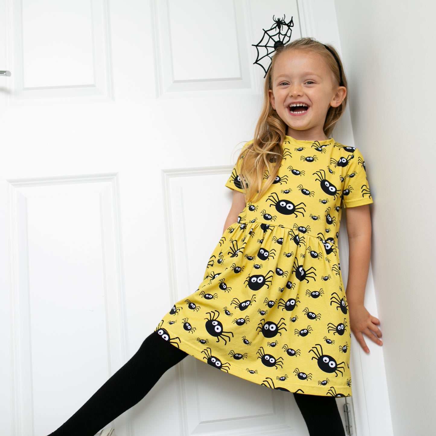 Regular price £18.00Add a touch of fun to little wardrobes with our Spider Print Dress, made in the UK from 95% cotton and 5% elastane jersey. Soft, stretchy, and gentle on delicate skin, this dress combines comfort with playful style.