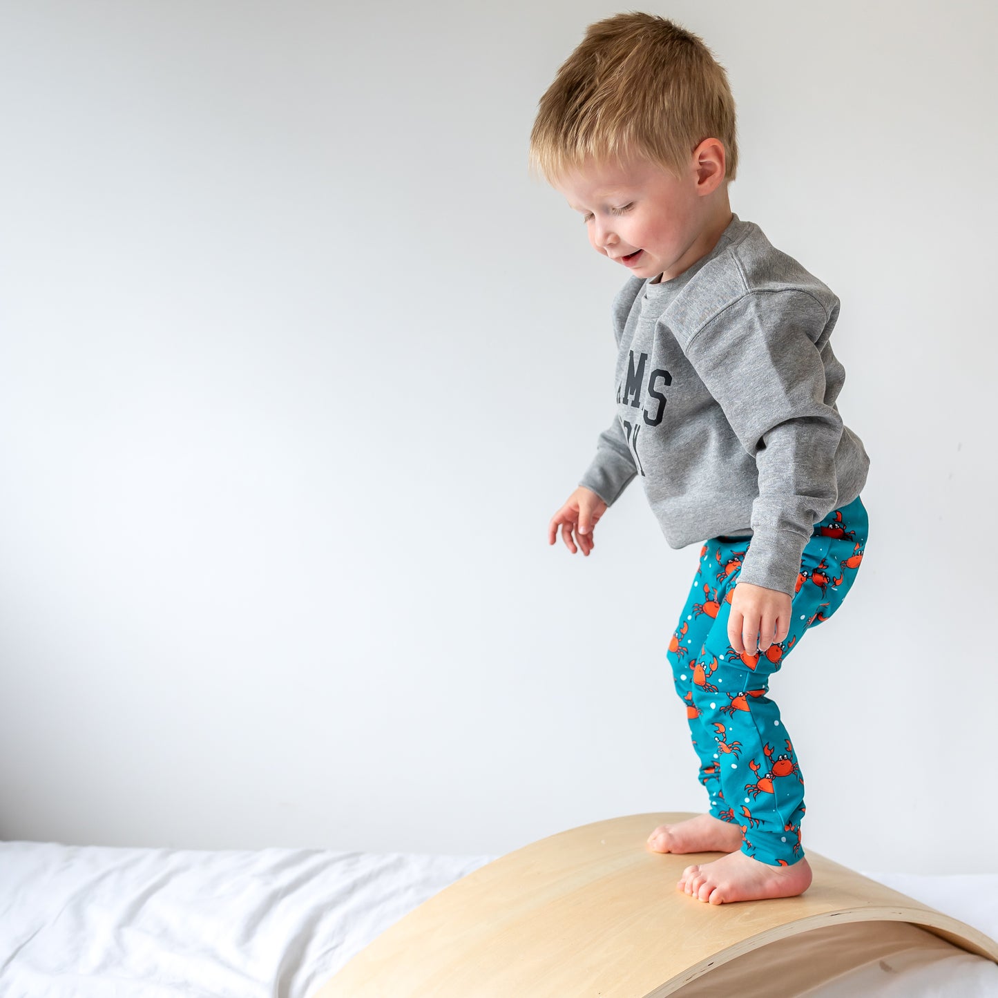 Sizes 4-5 and 5-6 are a different cut to our baby and toddler leggings with no side seam on the legs.