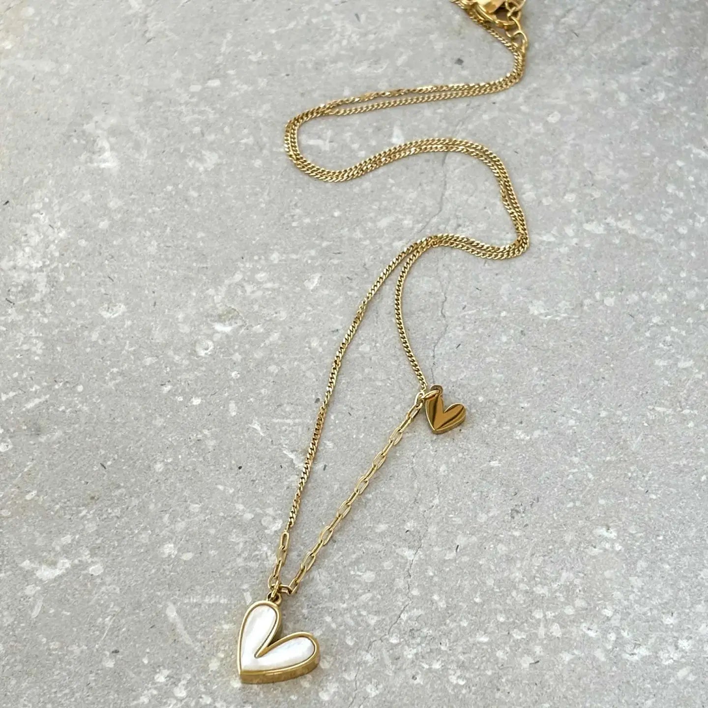 Tarnish Resistant Pearlescent Heart Necklace PVD Gold Plated Stainless Steel Jewellery Tarnish Resistant
