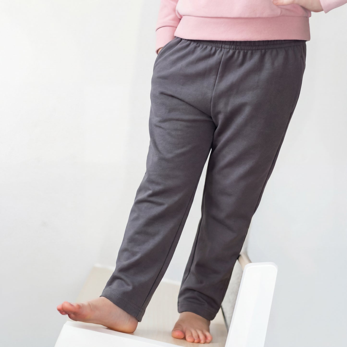 Sizes 4-5 and 5-6 are a different cut to our baby and toddler leggings with no side seam on the legs.