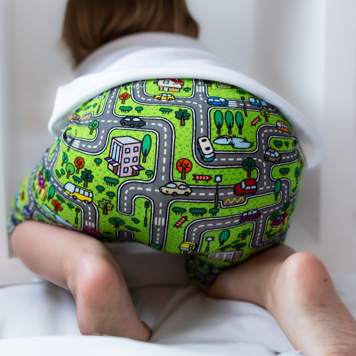 Our leggings are cut for both disposable and cloth nappies and regular pants in ages 2-4 .