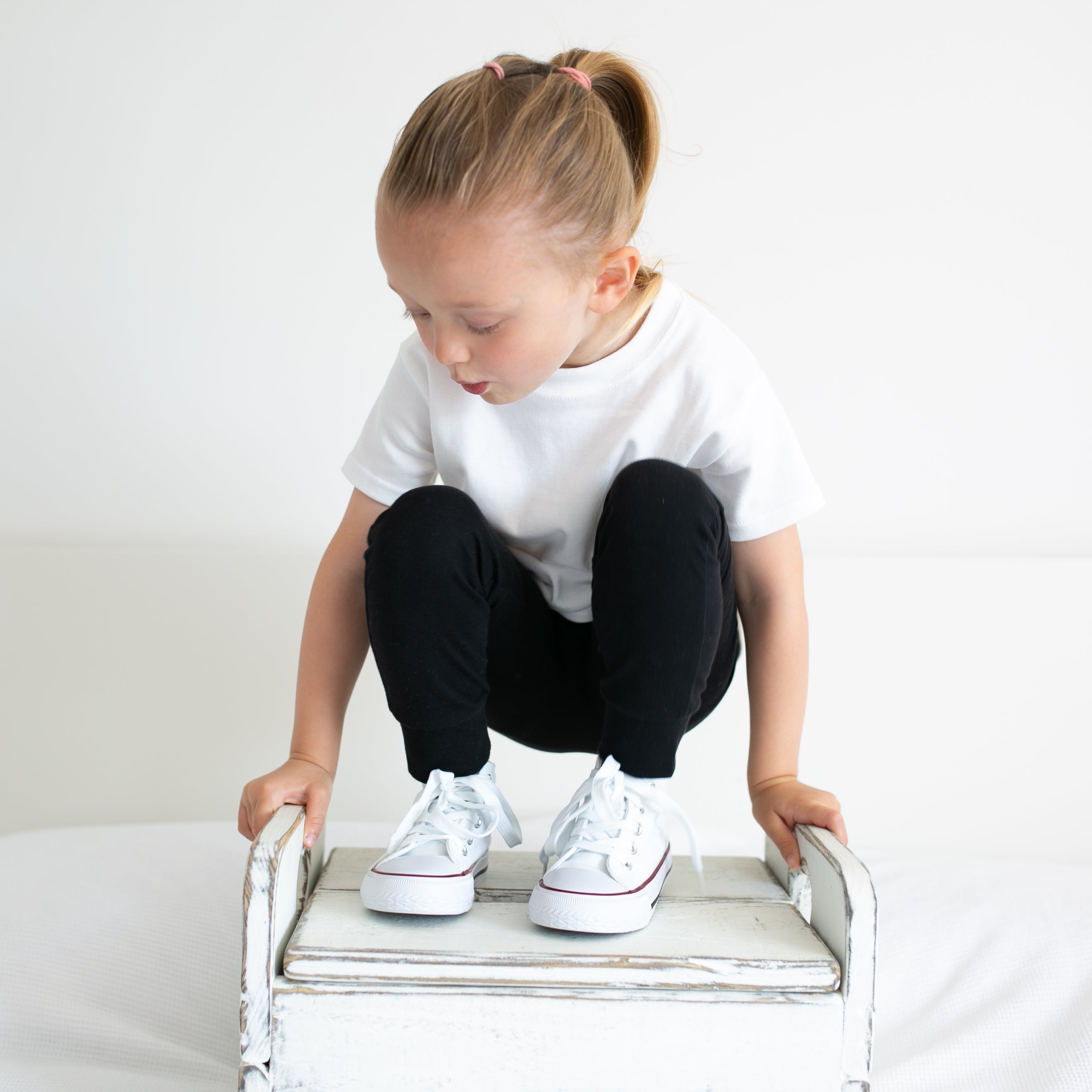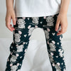 Sizes 4-5 and 5-6 are a different cut to our baby and toddler leggings with no side seam on the legs.