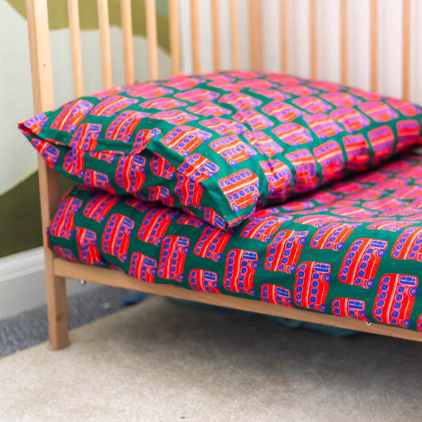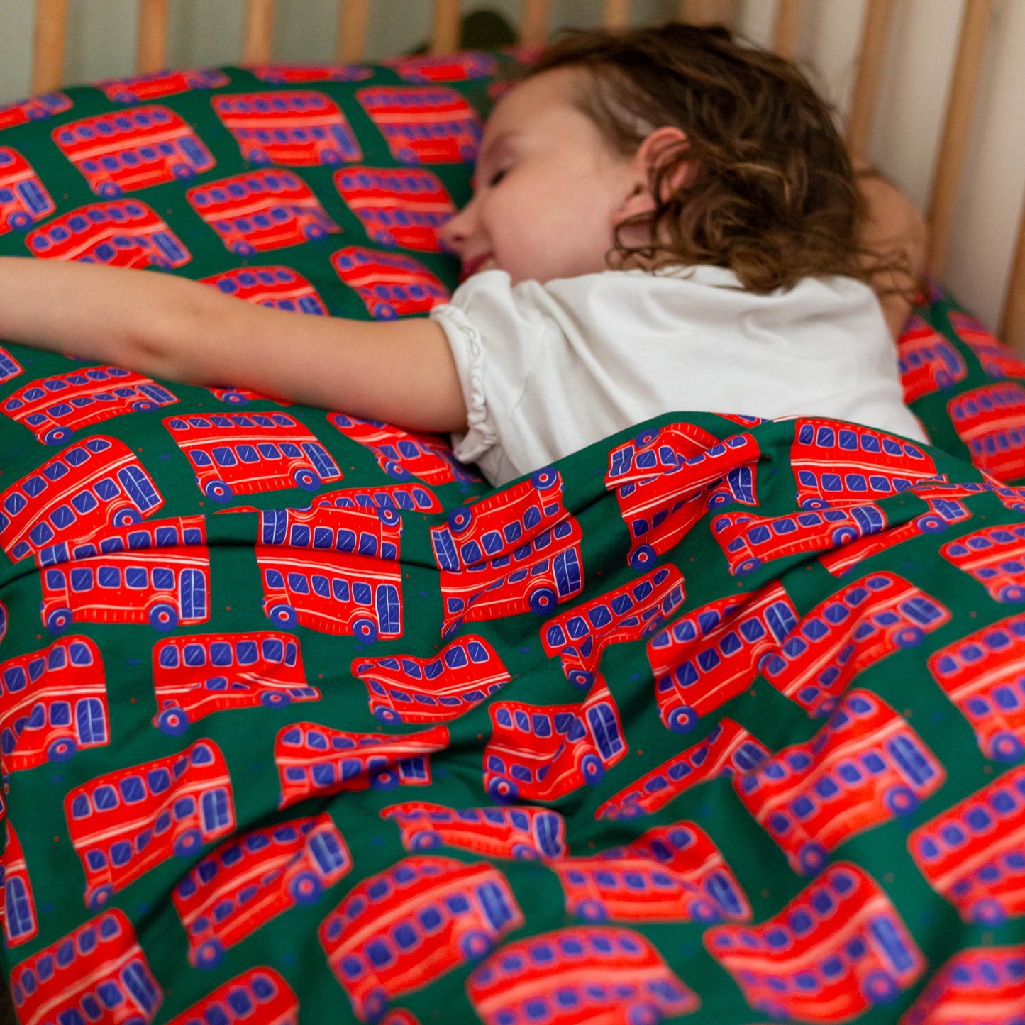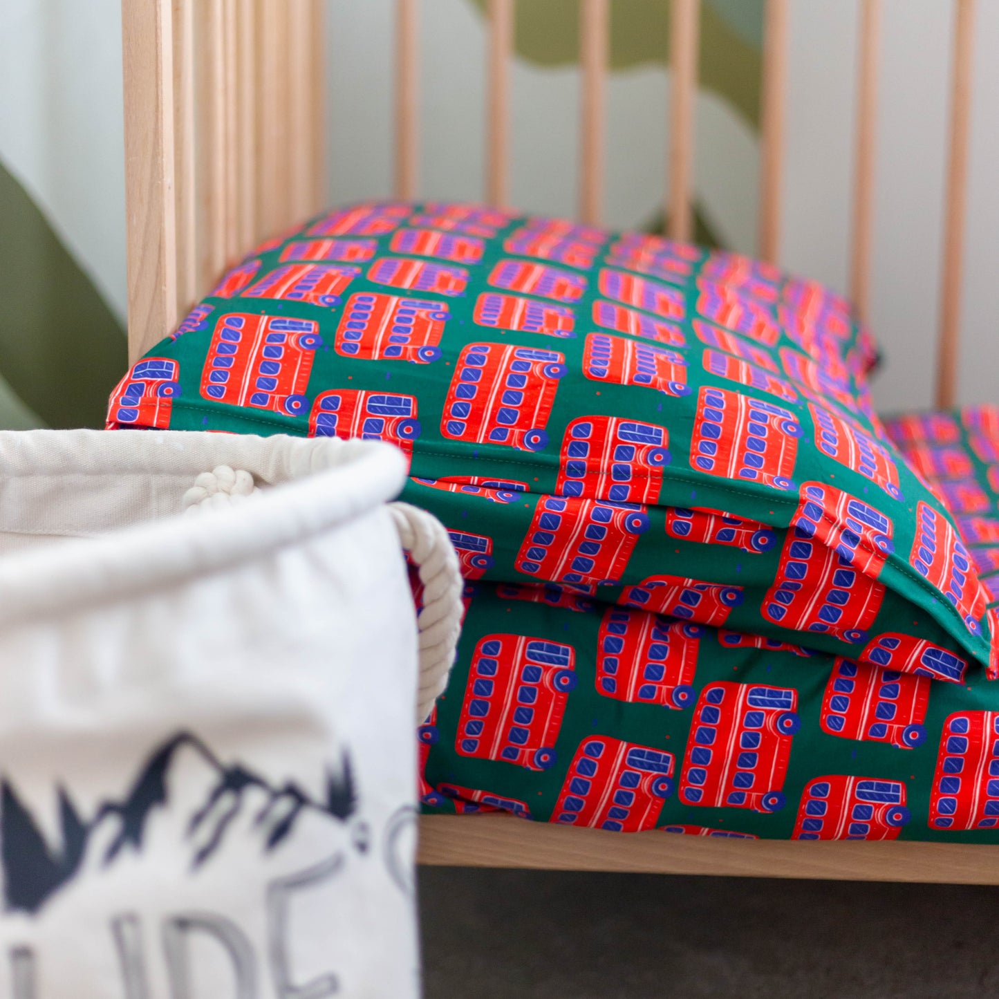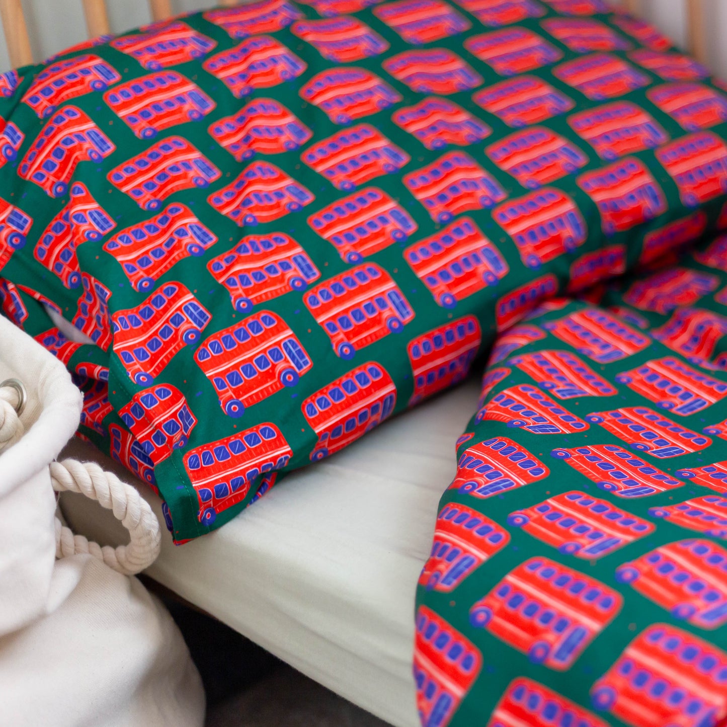 Regular price £43.00Add a playful British touch to your little one’s bedroom with our charming Bus Print Duvet Set, proudly made in the UK. Crafted from soft 95% cotton jersey and printed with baby-safe inks, this bedding is both comfy and safe for children.