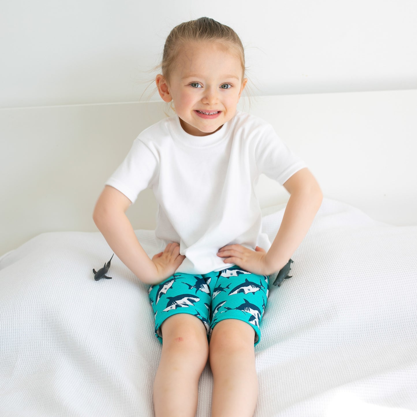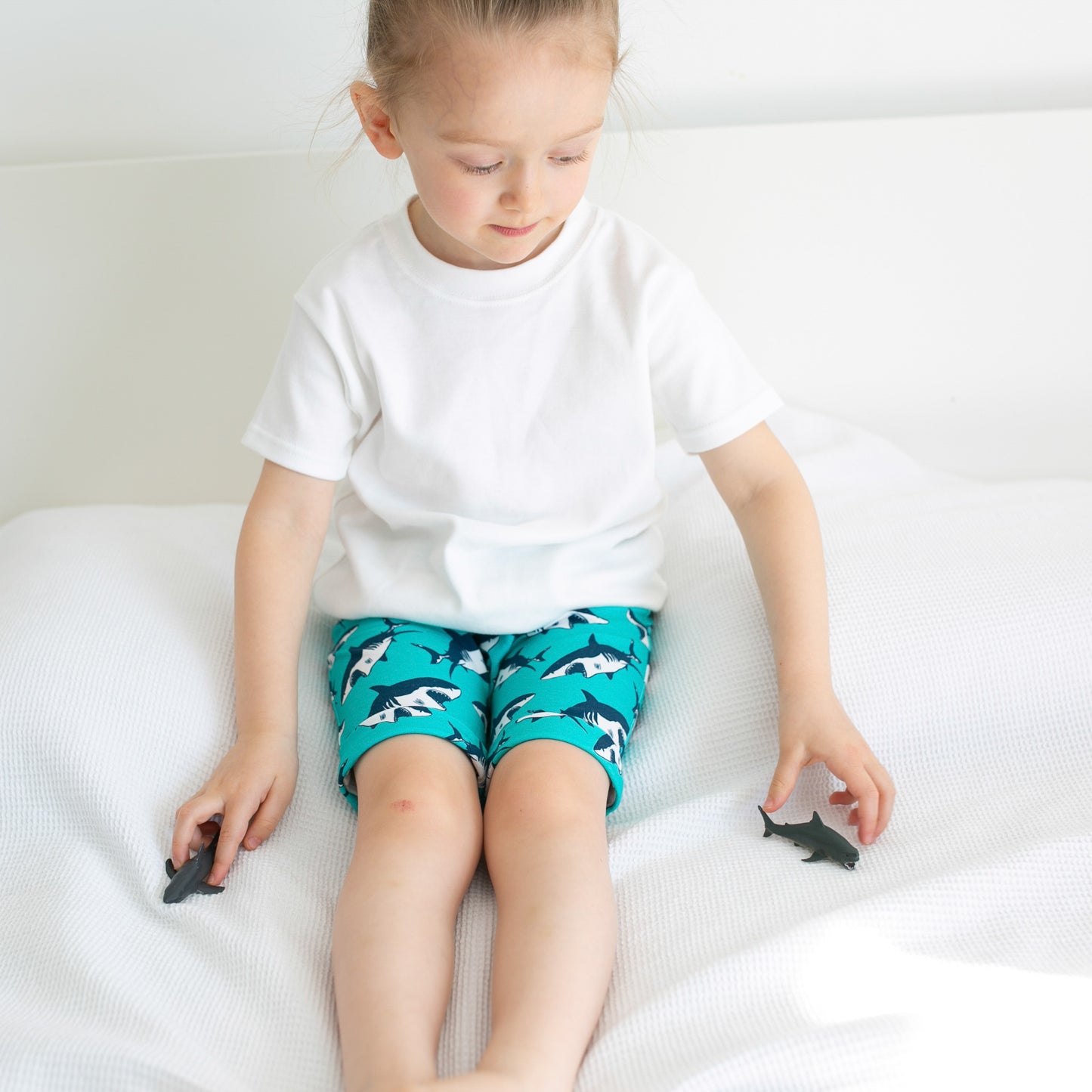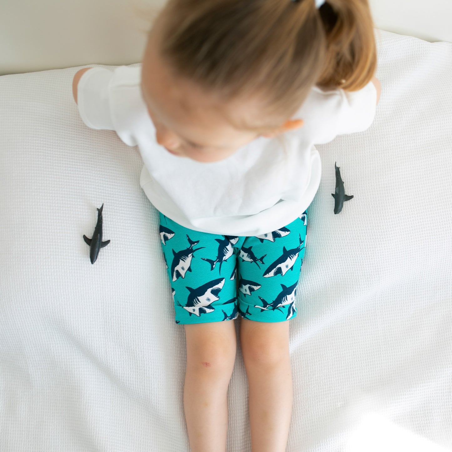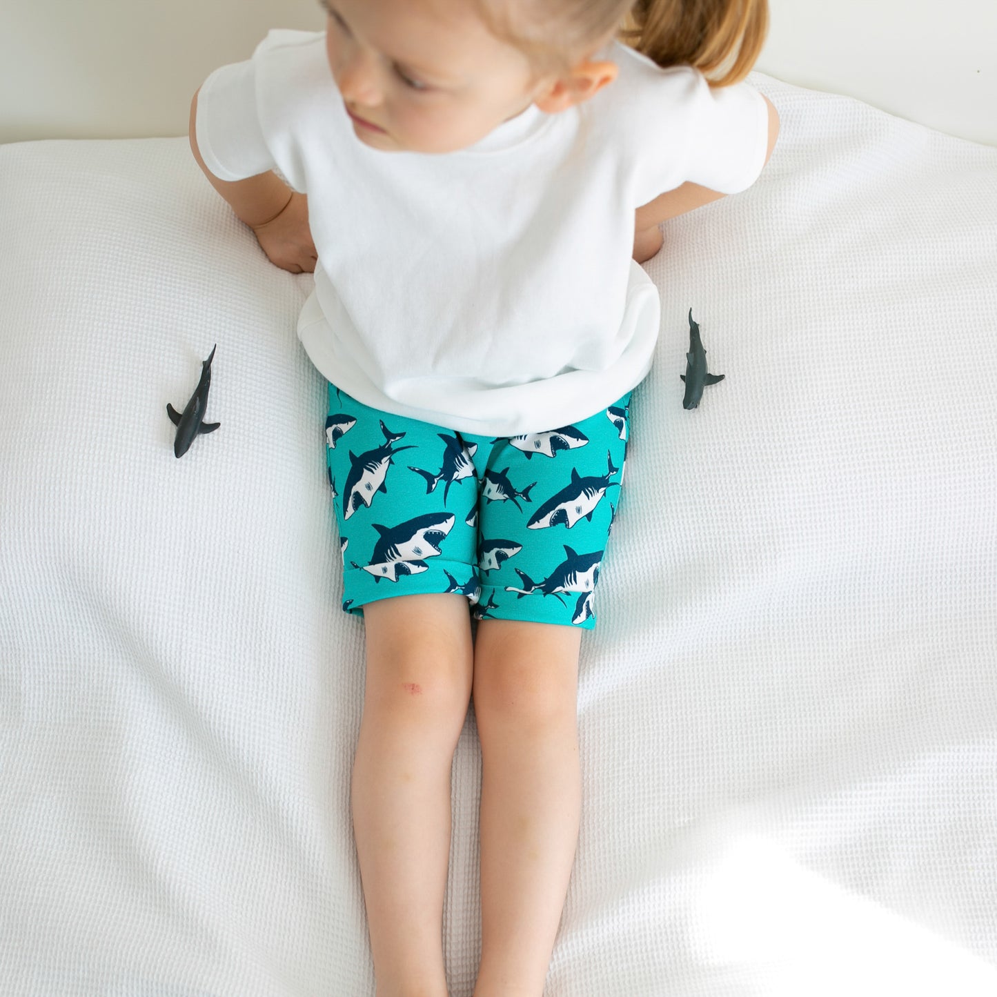 Our shark print Shorts are made in the UK from 95% Cotton 5 % Elastane Jersey.