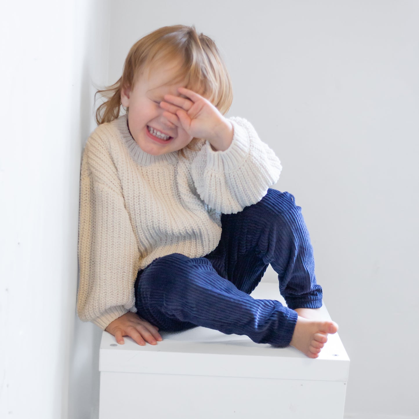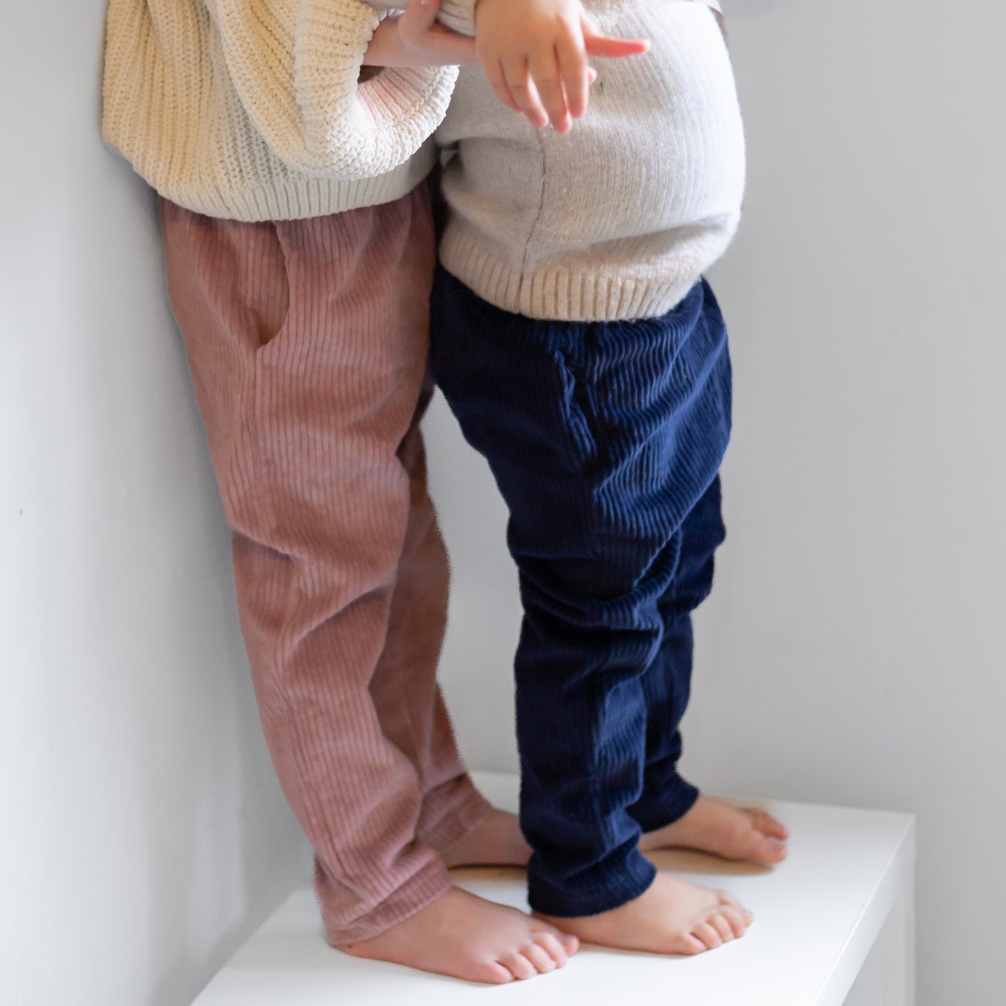 Featuring pockets on each side (perfect for collecting things on their adventures) our trousers have an comfy elasticated waist and a finished cover-stitched hem - although we love rolling them up for a relaxed vibe)