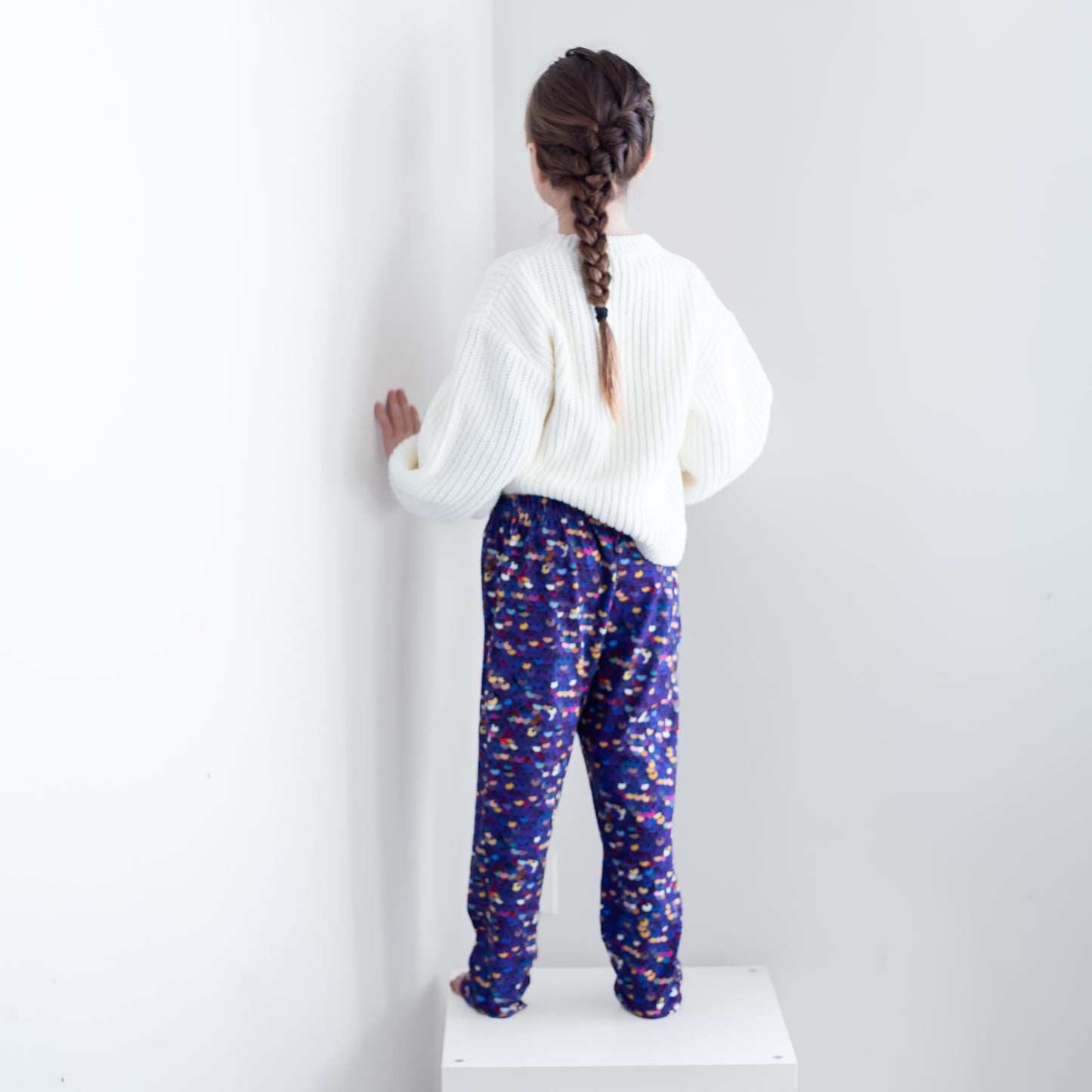 Featuring pockets on each side (perfect for collecting things on their adventures) our trousers have an comfy elasticated waist and a finished cover-stitched hem - although we love rolling them up for a relaxed vibe)
