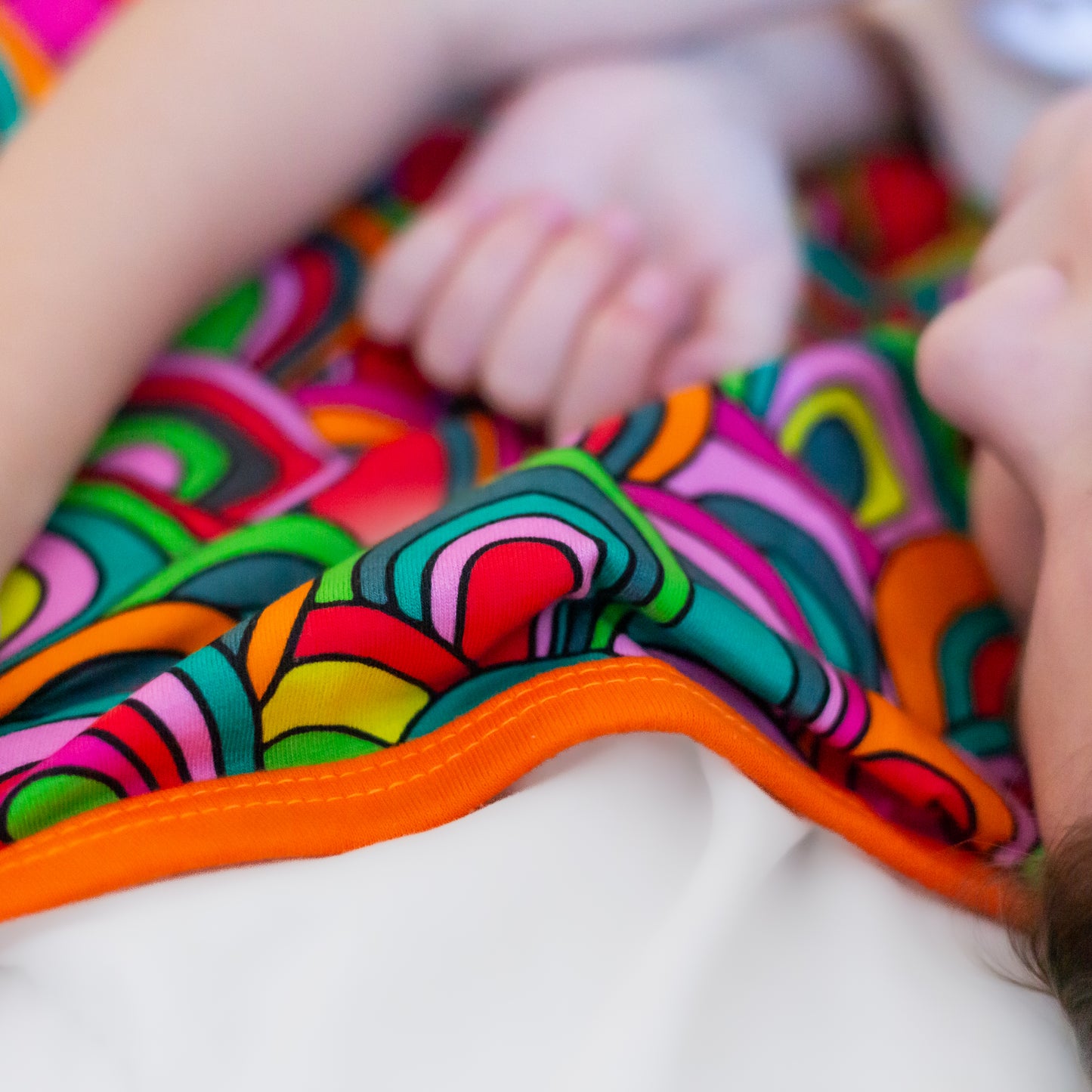 Wrap your little one in colour and comfort with our XXL Retro Rainbow Blanket. Crafted here in England from super-soft cotton, this double-layered blanket is wonderfully gentle on delicate skin while adding a touch of cheerful retro charm to every snuggle.