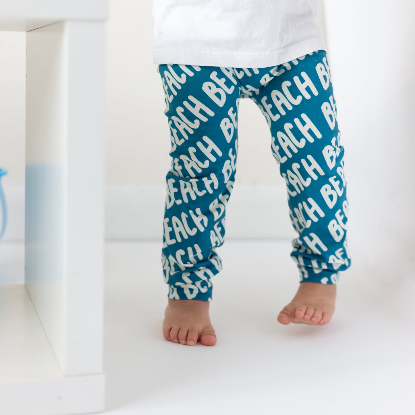 The leggings also feature a reversible ankle cuff which can be turned up for shorter babies whilst also keeping their little socks on .All of our styles are cut for both disposable and cloth nappies and can be mixed and matched with our range of hand printed vests and T shirts .
