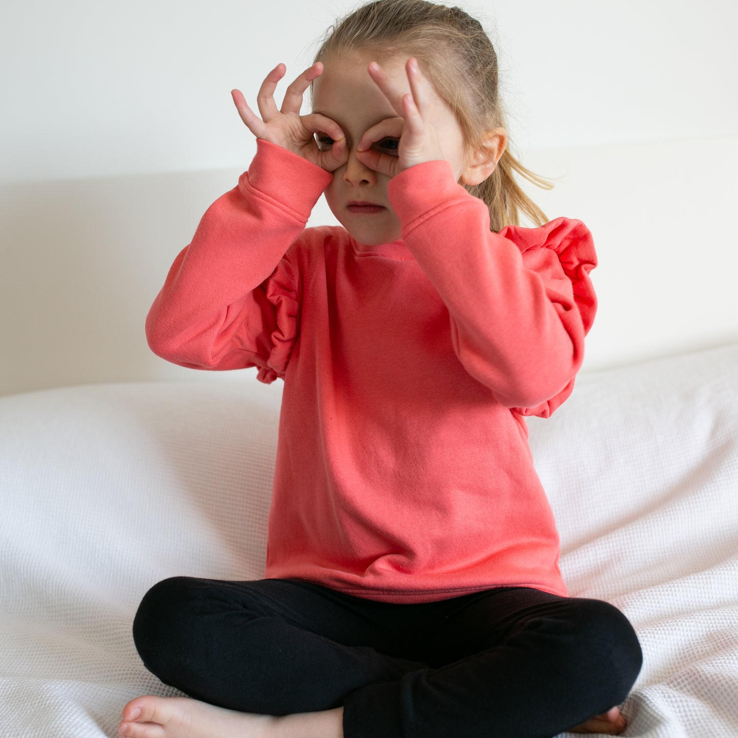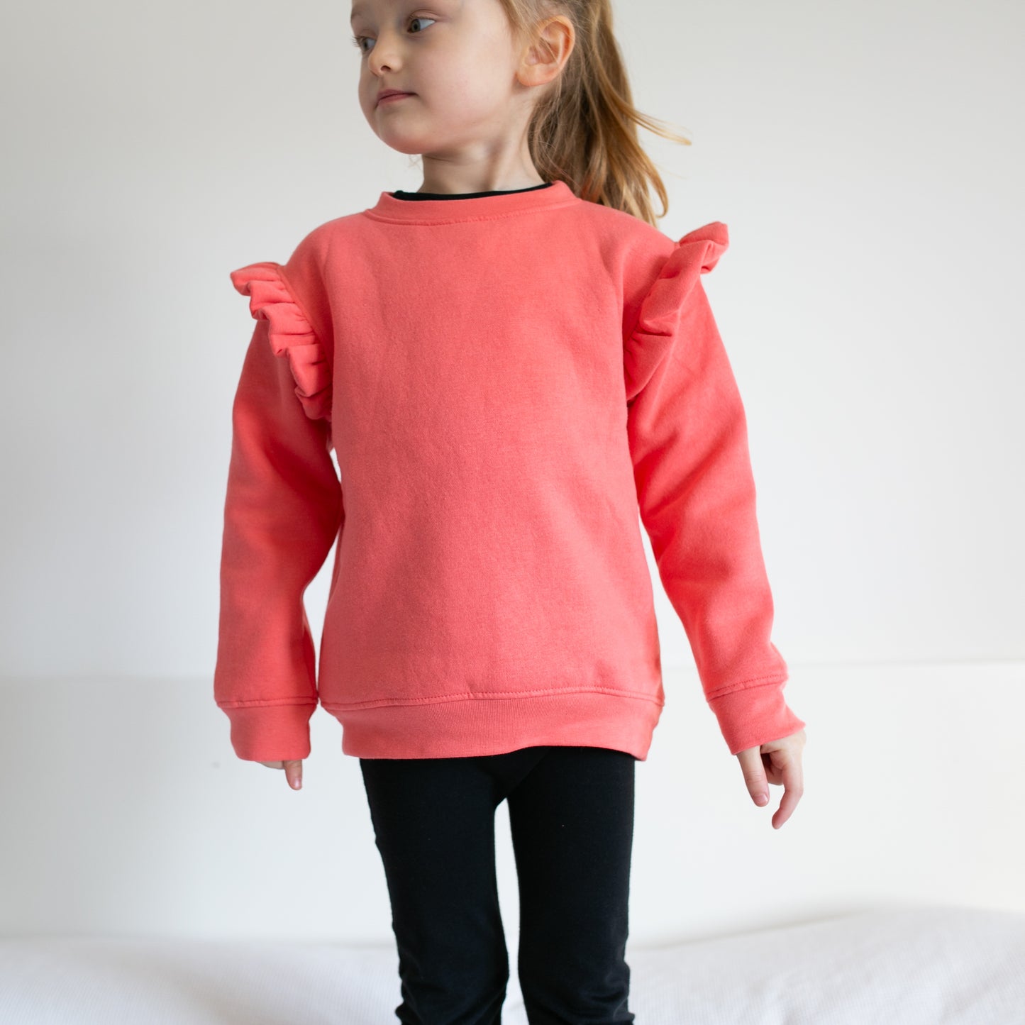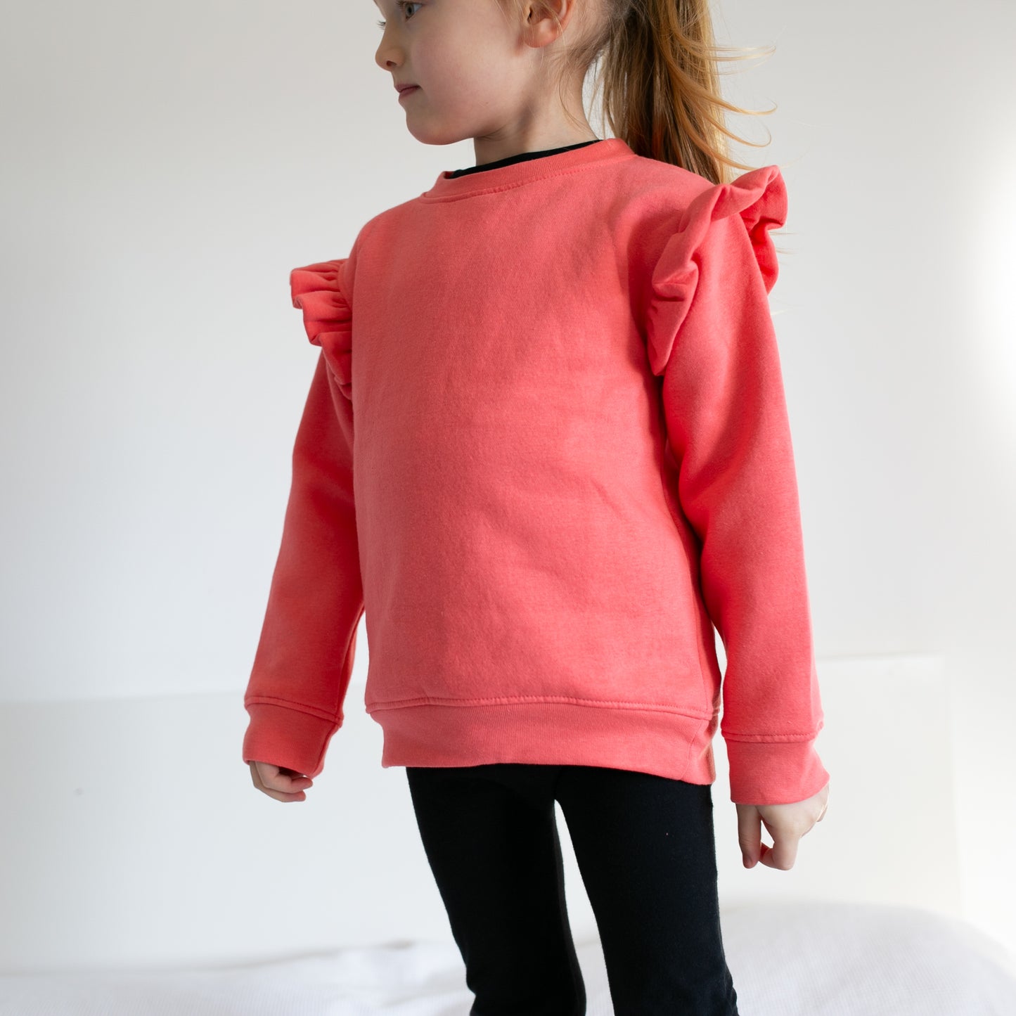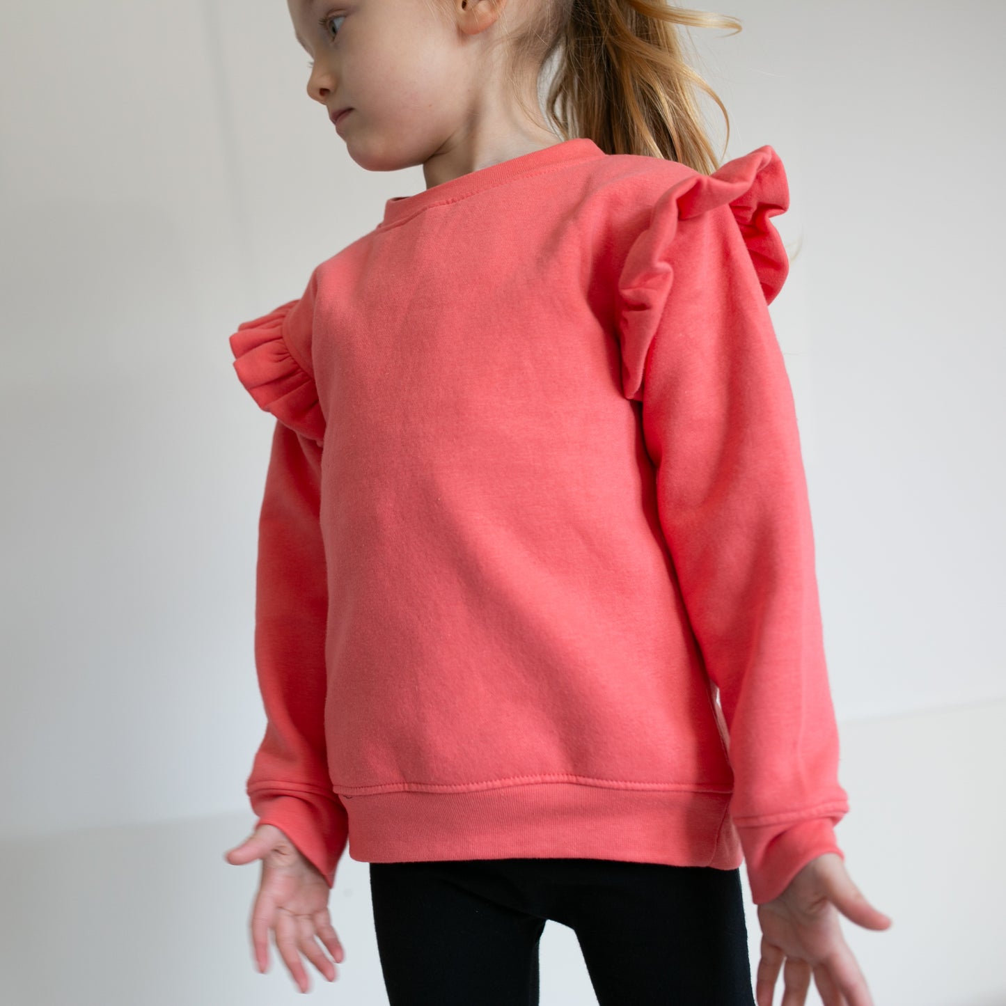 Coral frill sleeve Sweatshirt