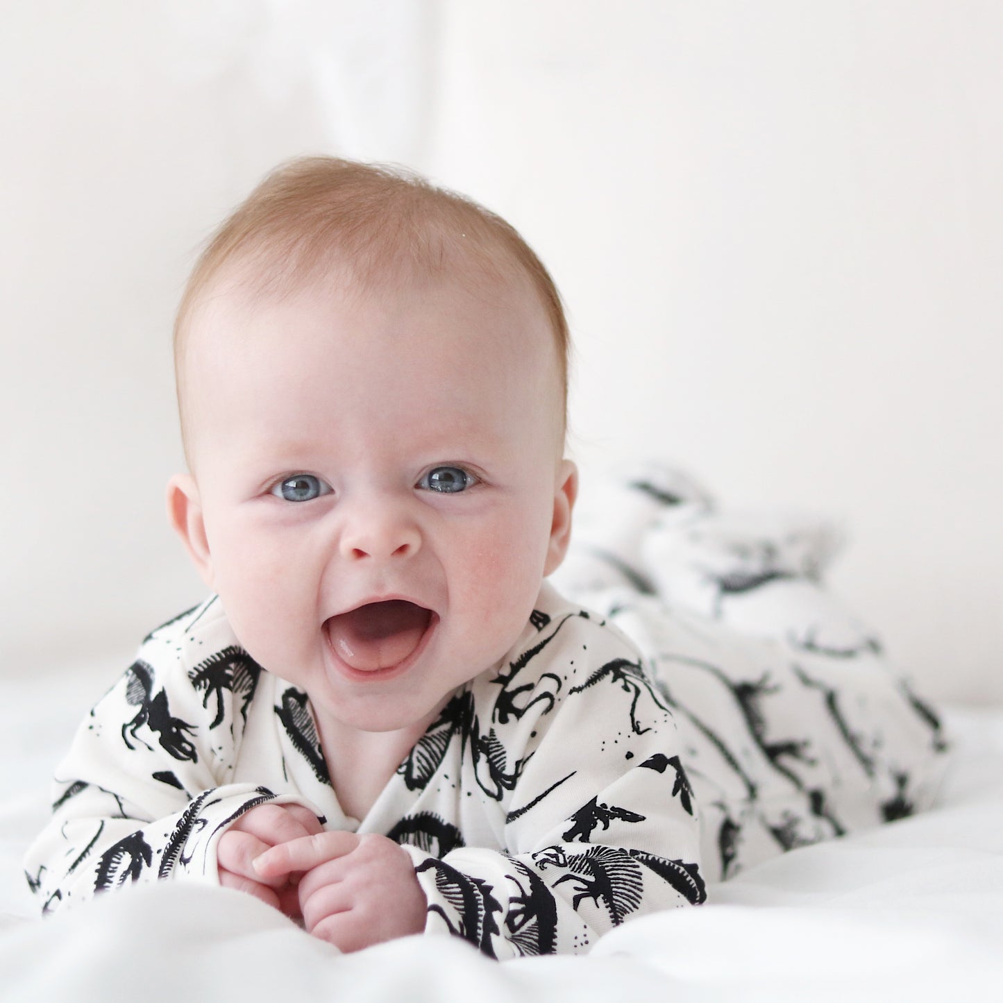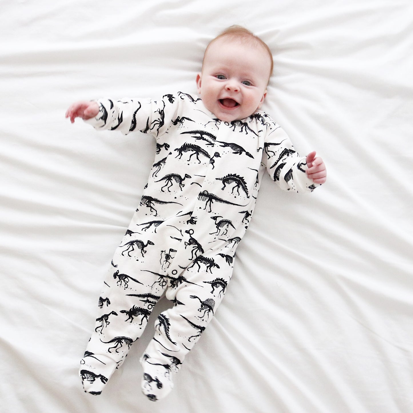 Our new and gorgeous Dino print sleep suit is the perfect one-piece for any baby.