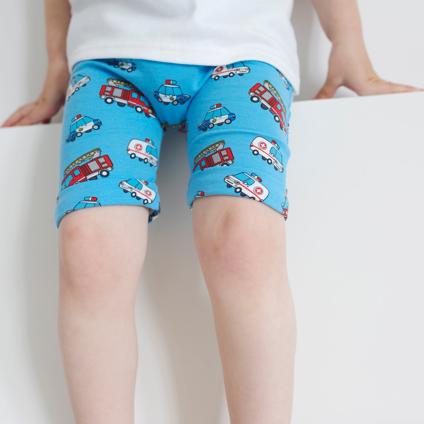 Our Emergency print Shorts are made in the UK from 95% Cotton 5 % Elastane Jersey.