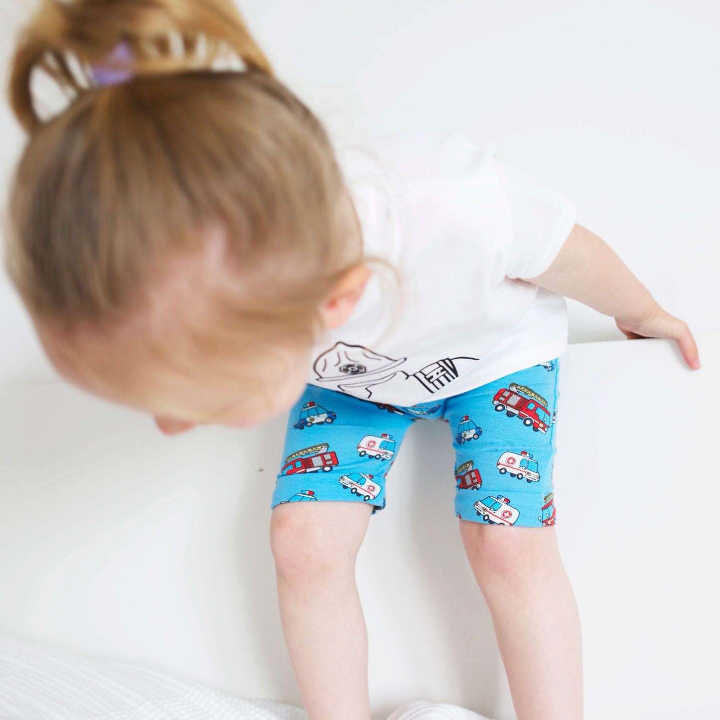 Sizes 4-5years + are a different cut to our baby and toddler shorts to allow for extra movement.