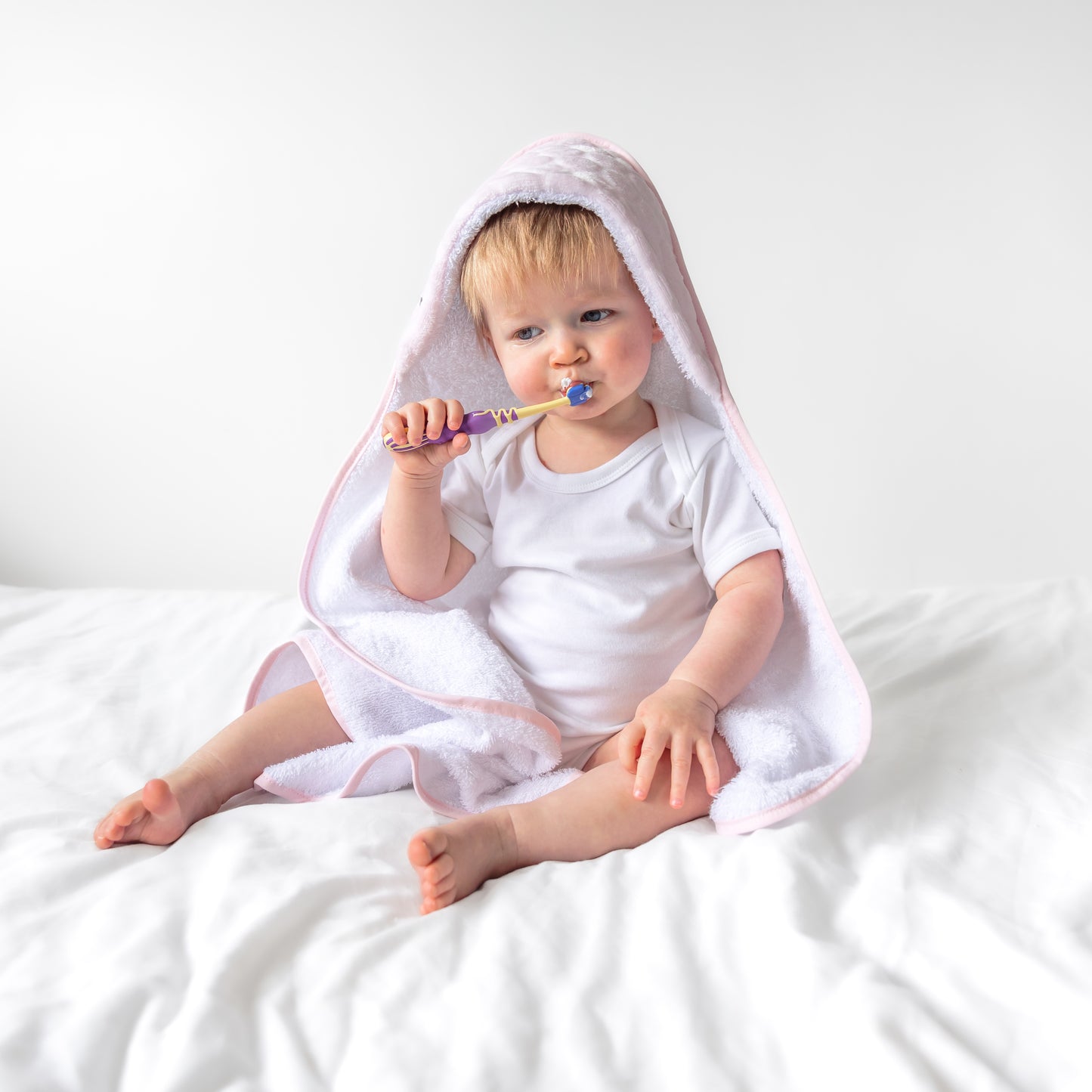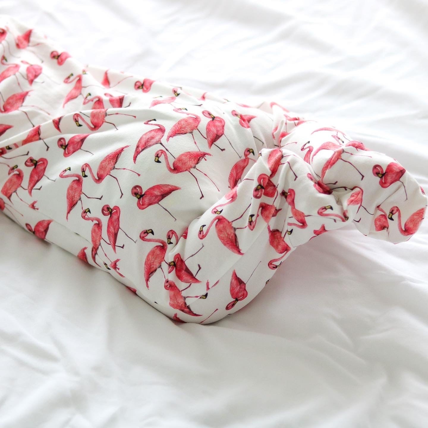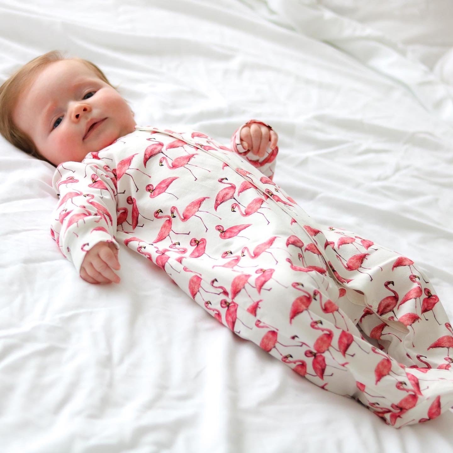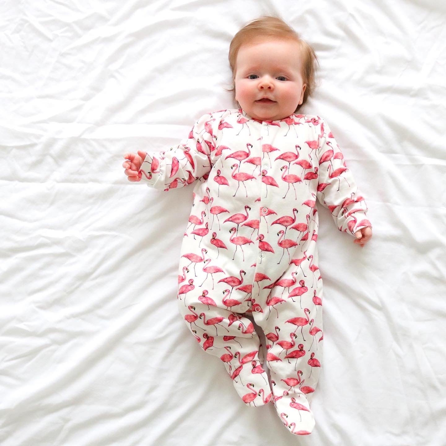 Our Flamingo gift box contains one of our cotton flamingo sleepsuits, a soft and gorgeously pink Flamingo baby rattle, and our British made hooded towel.