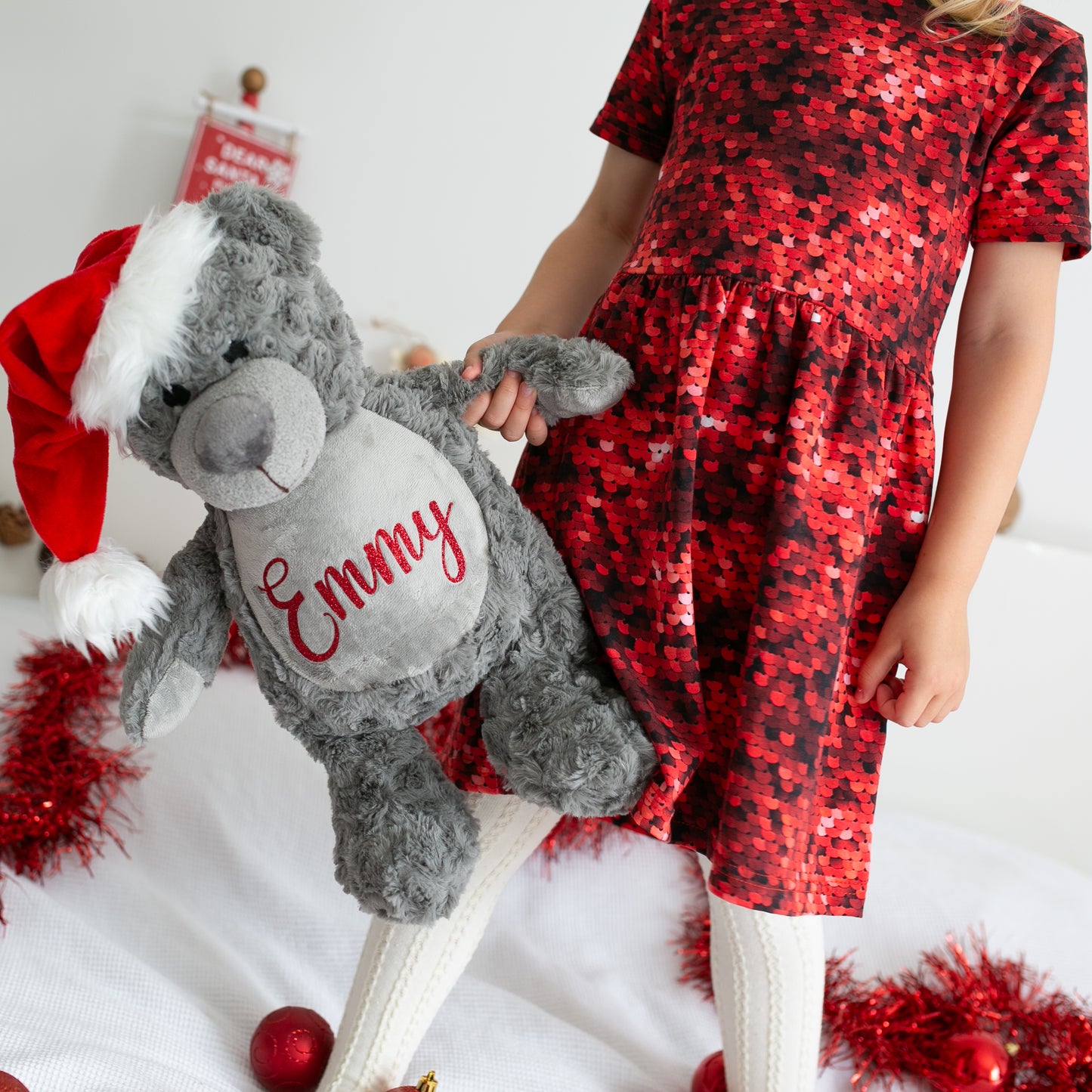 Large personalised Christmas Grey Teddy Bear