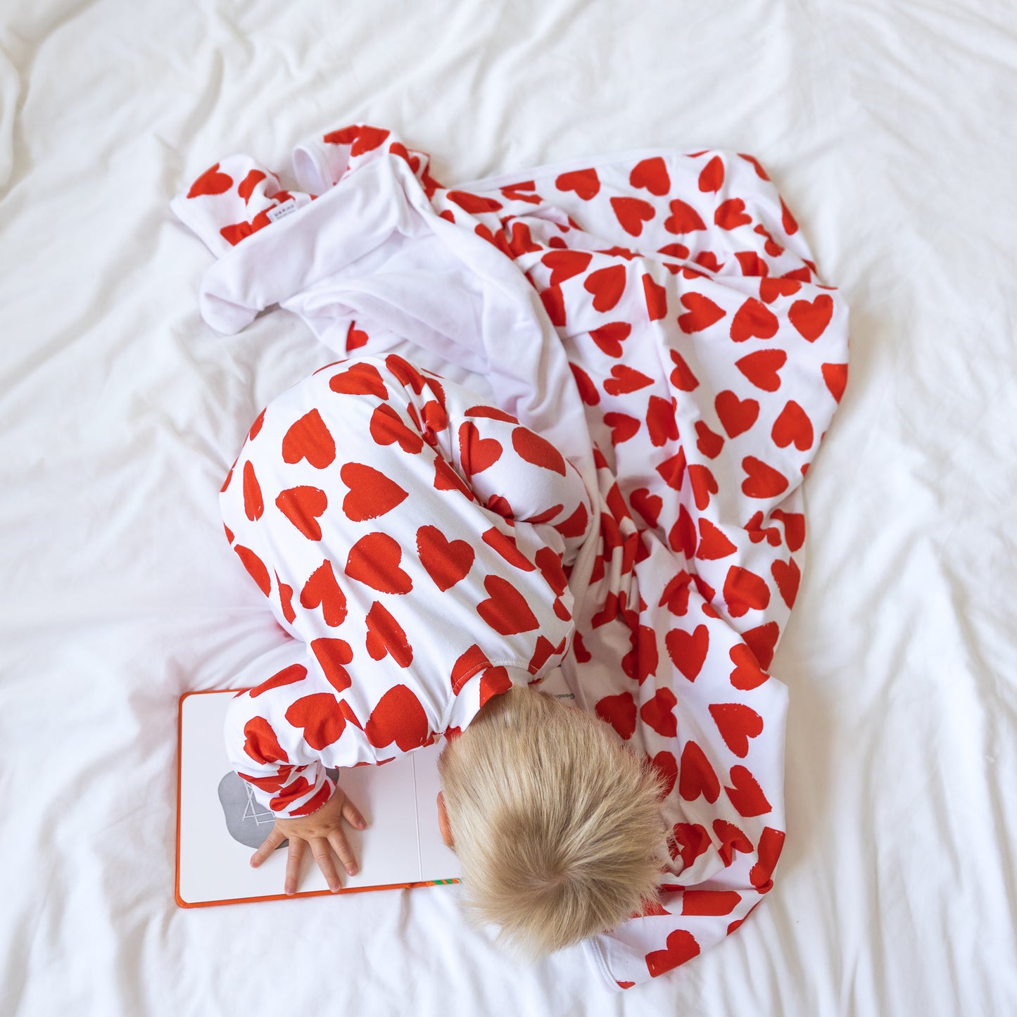 Our new and gorgeous heart print sleep suit is the perfect one-piece for any baby.