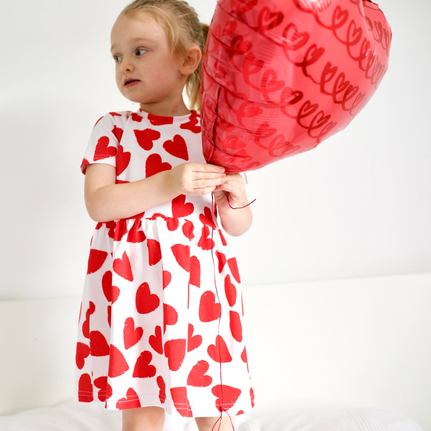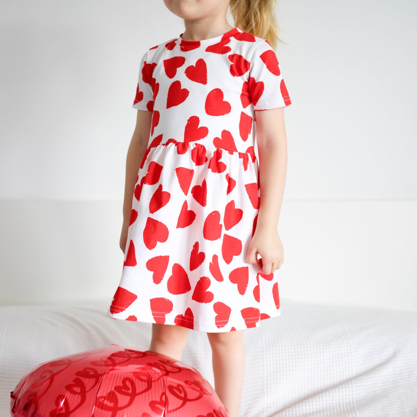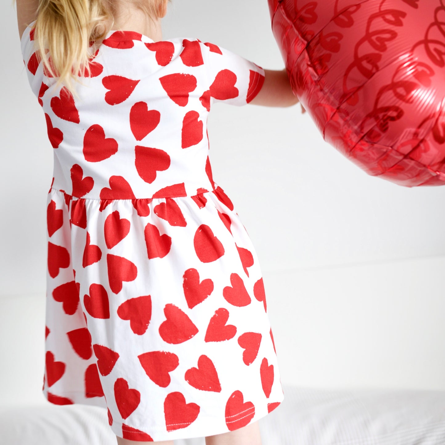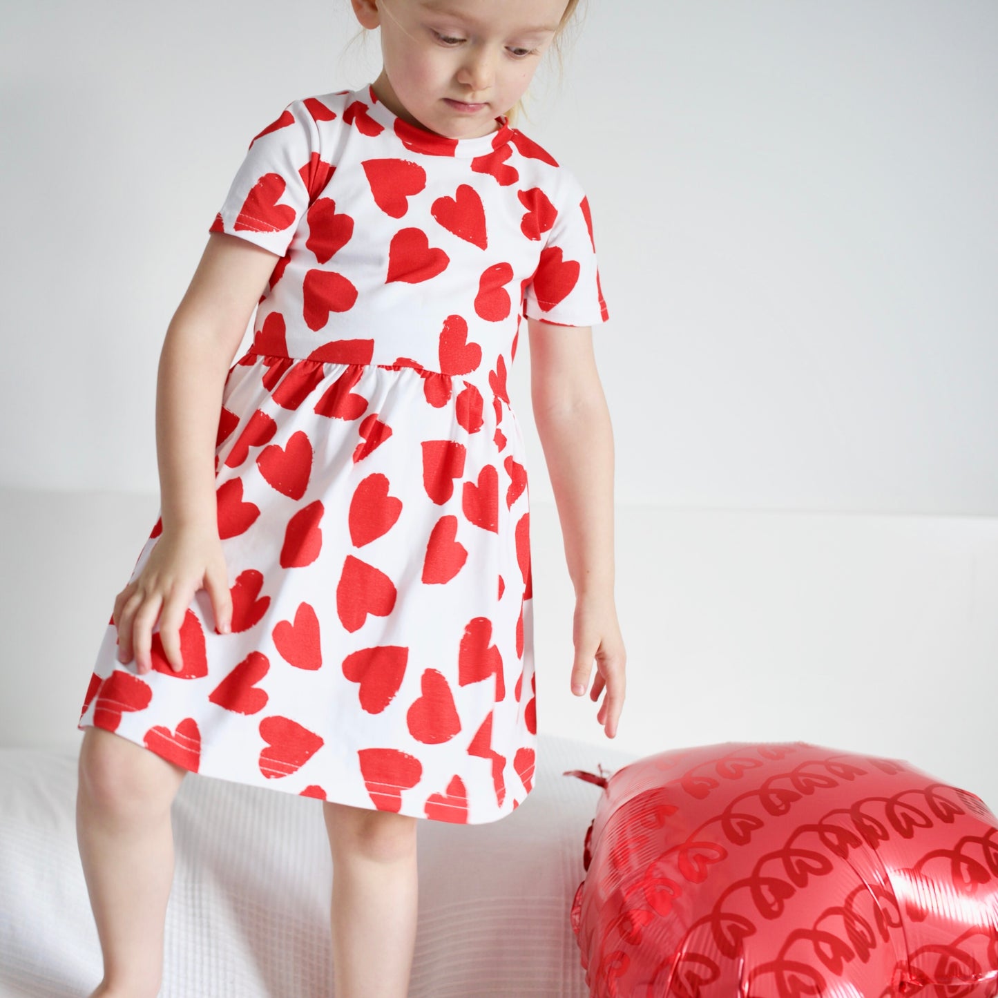 Regular price £18.00Our Love heart print dress is made in the UK from 95% Cotton 5 % Elastane Jersey.