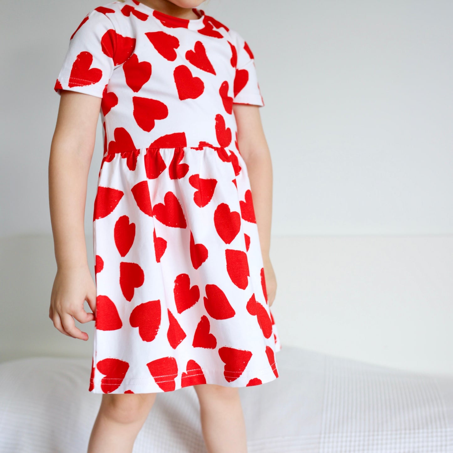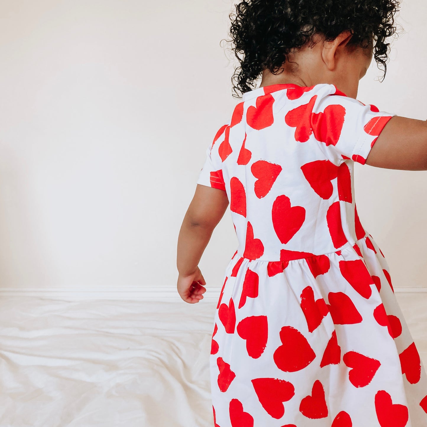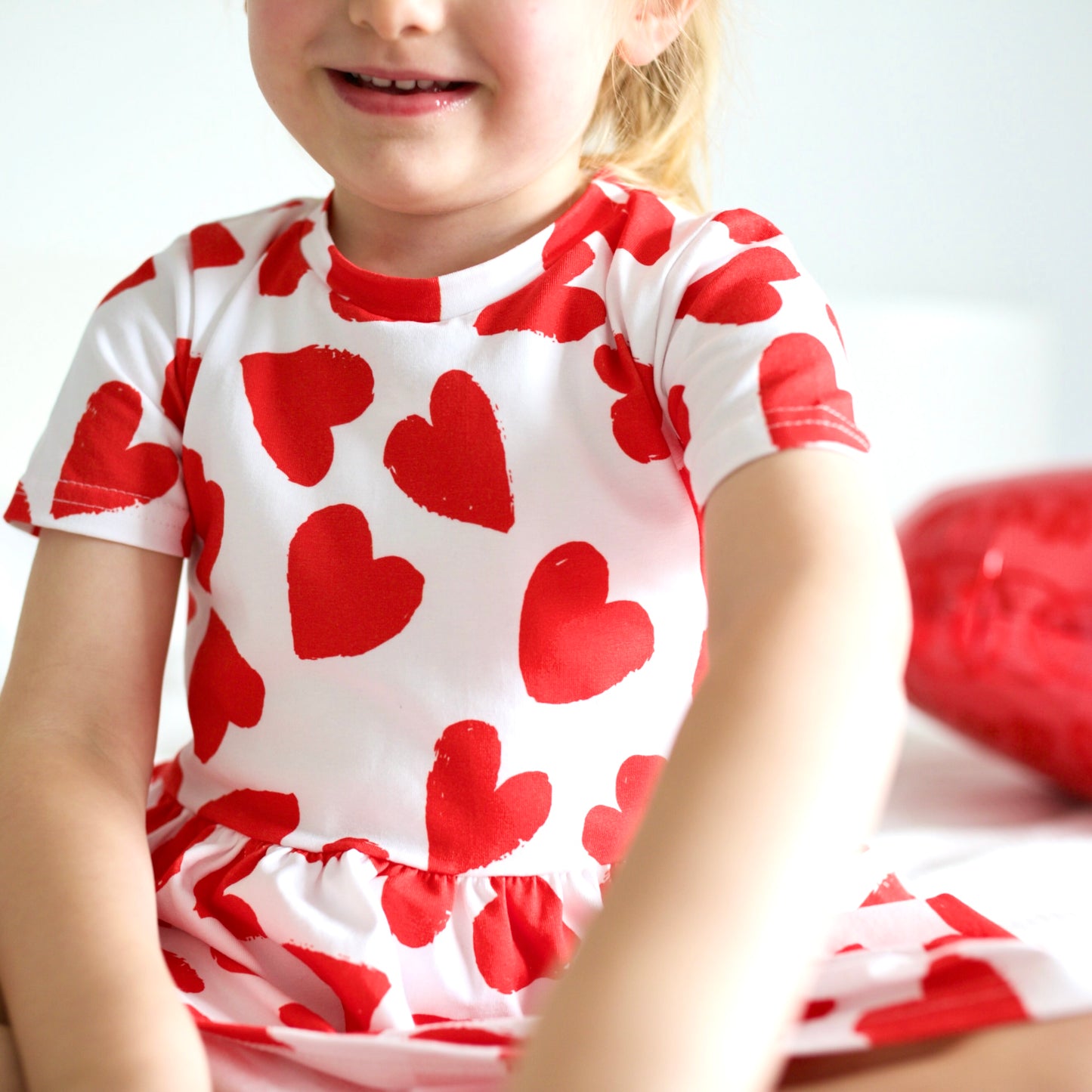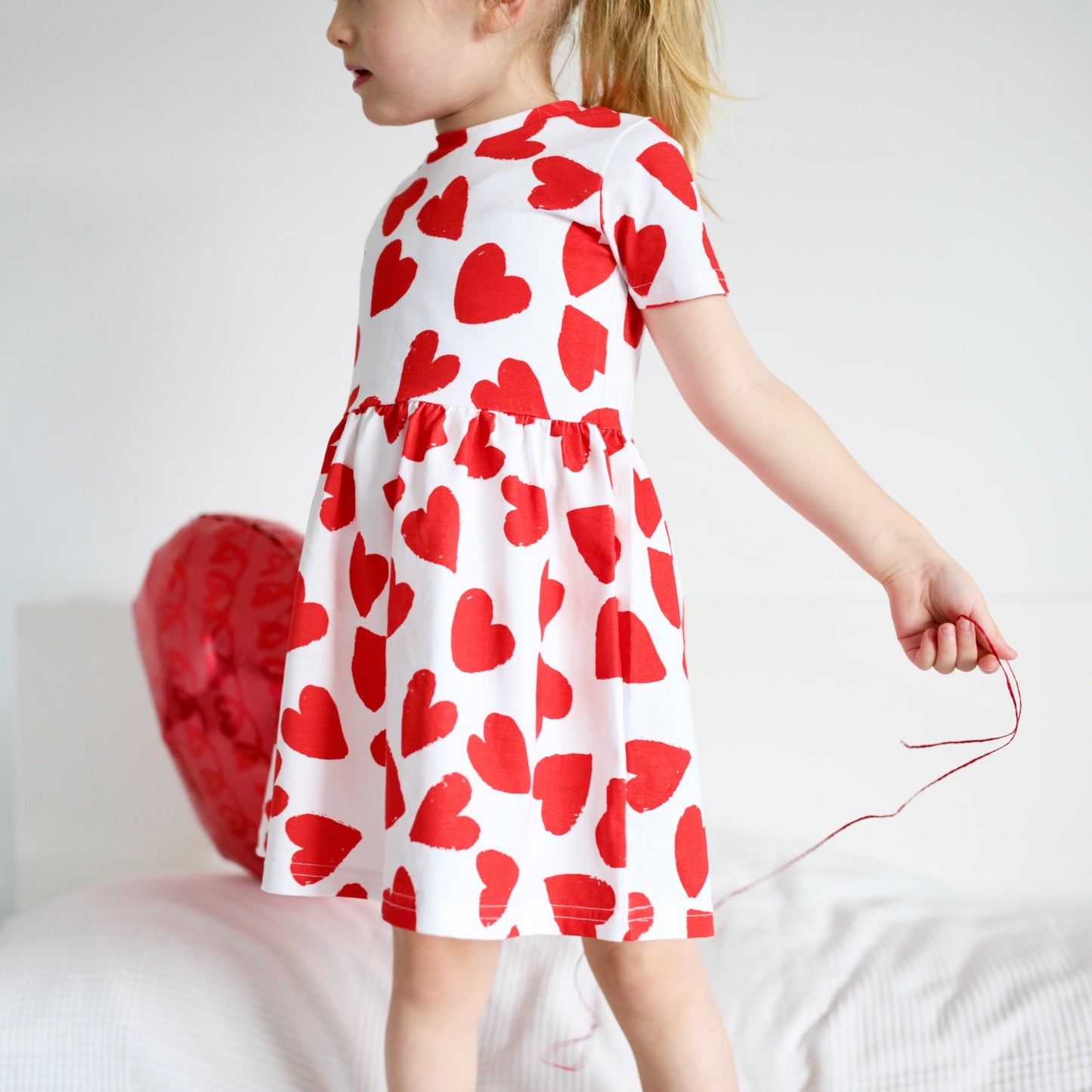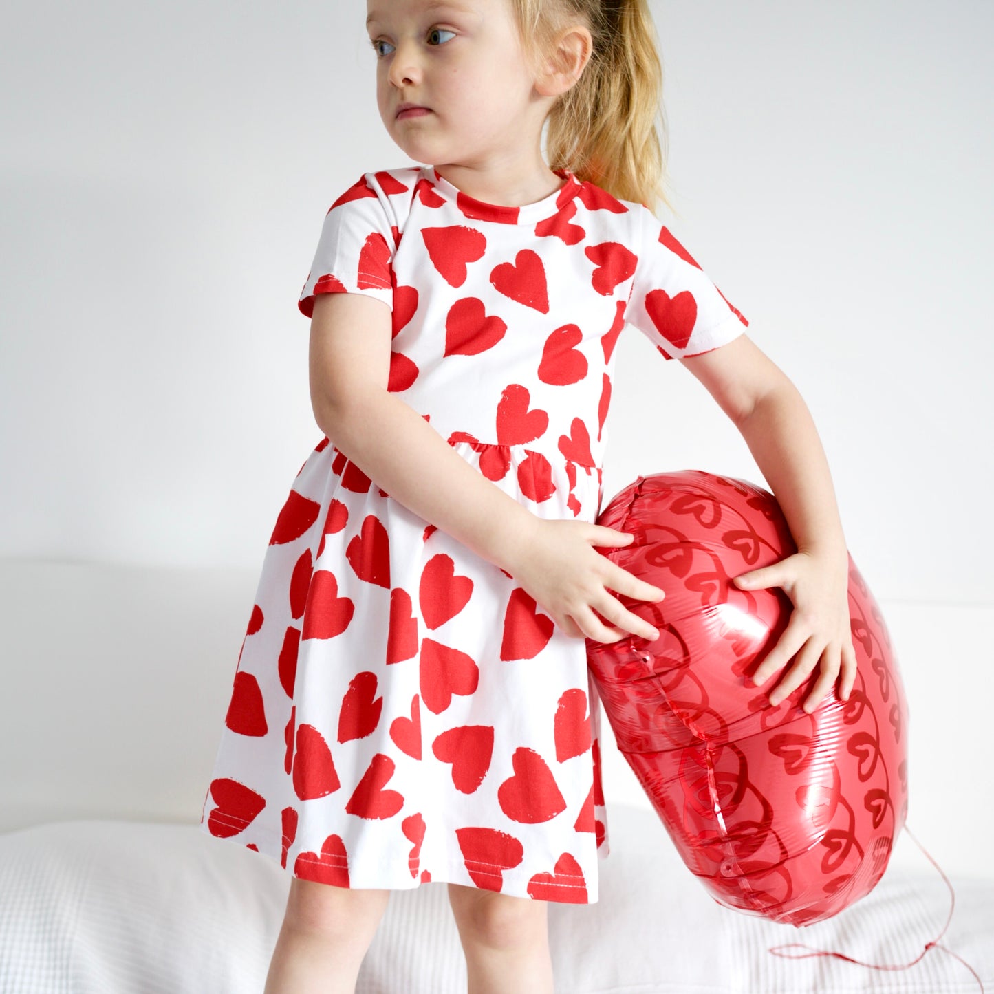 Regular price £18.00Our Love heart print dress is made in the UK from 95% Cotton 5 % Elastane Jersey.