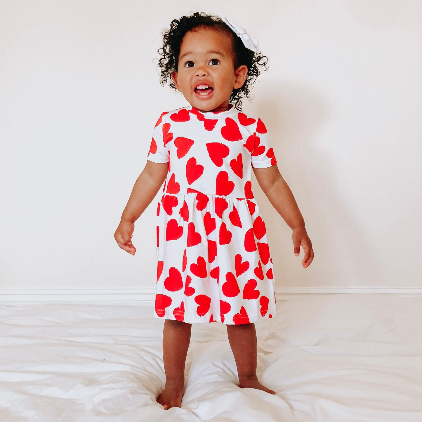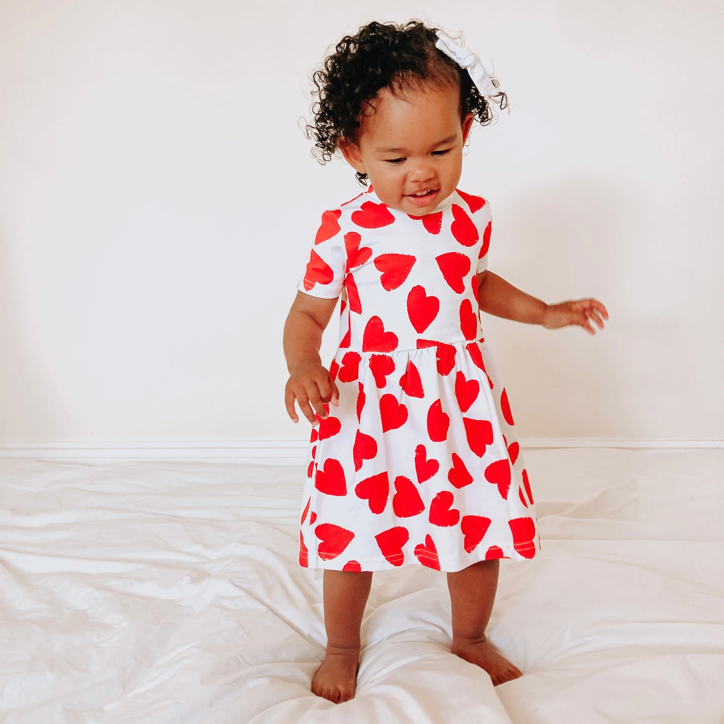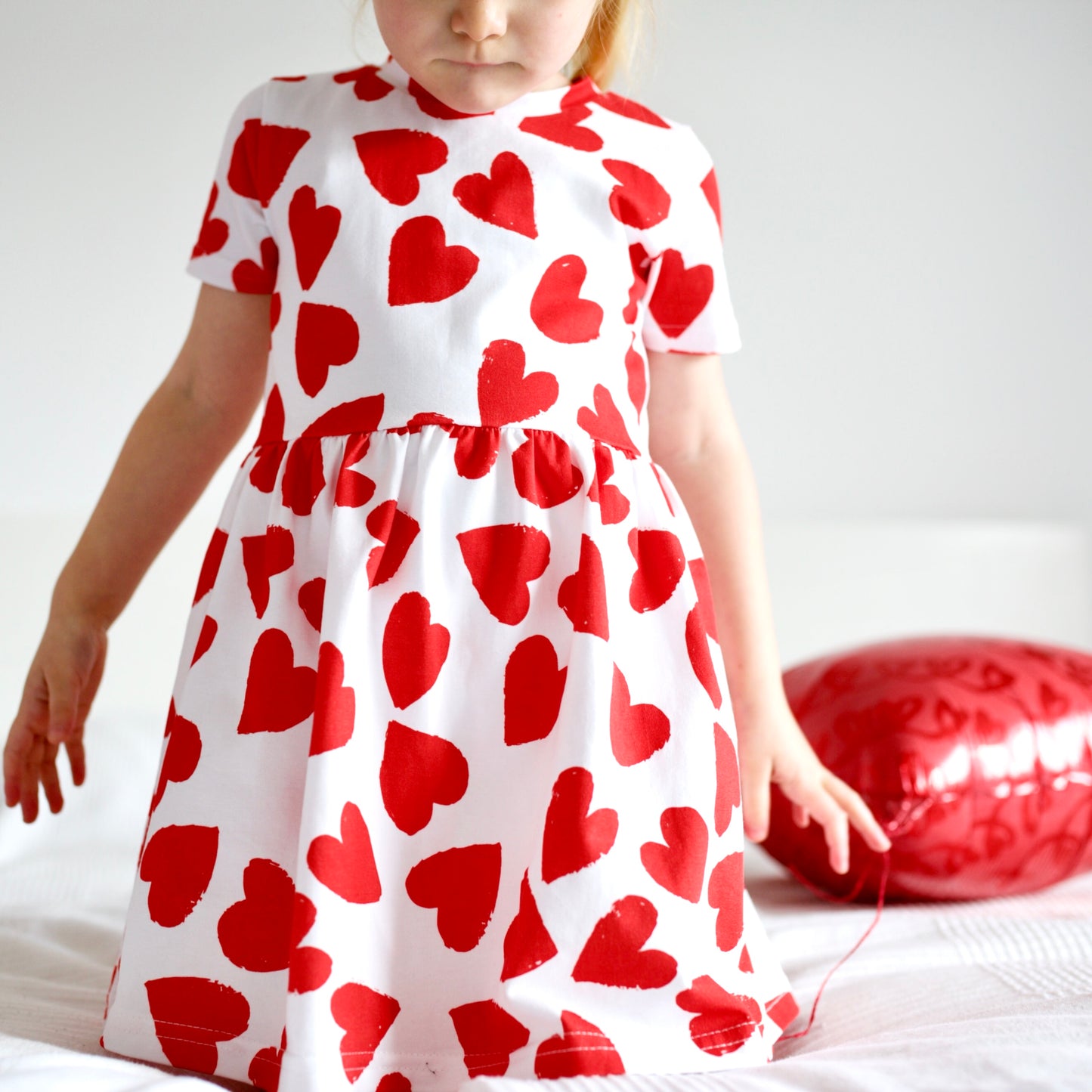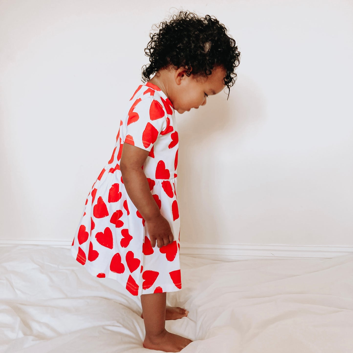 Regular price £18.00Our Love heart print dress is made in the UK from 95% Cotton 5 % Elastane Jersey.