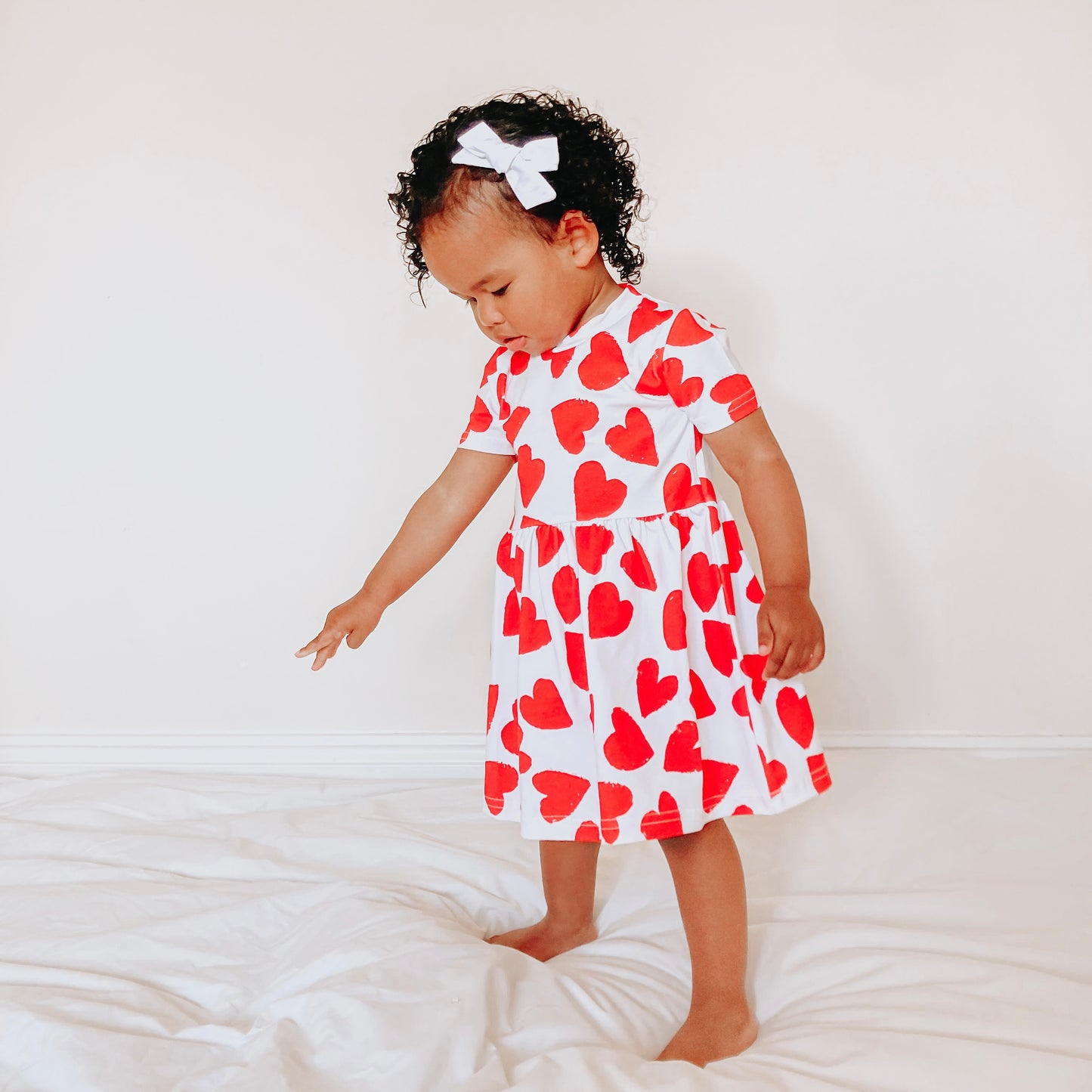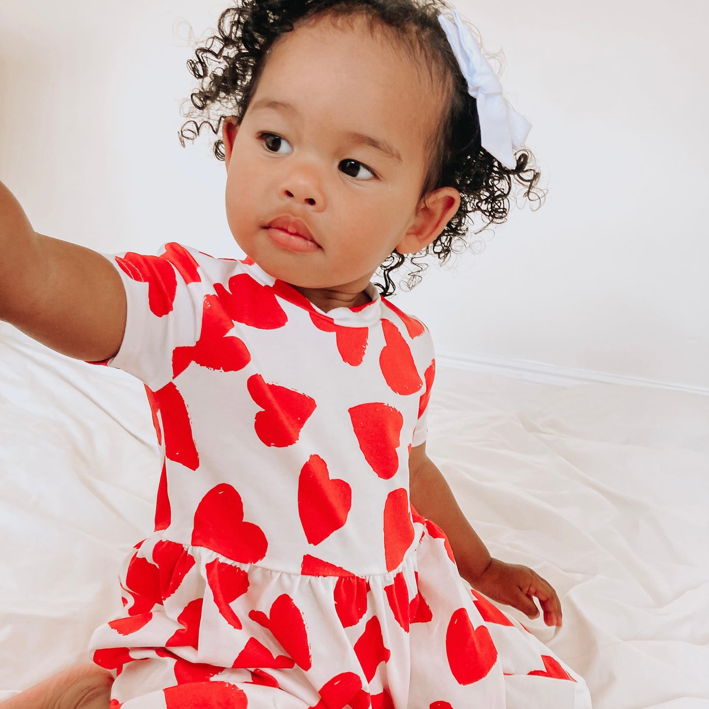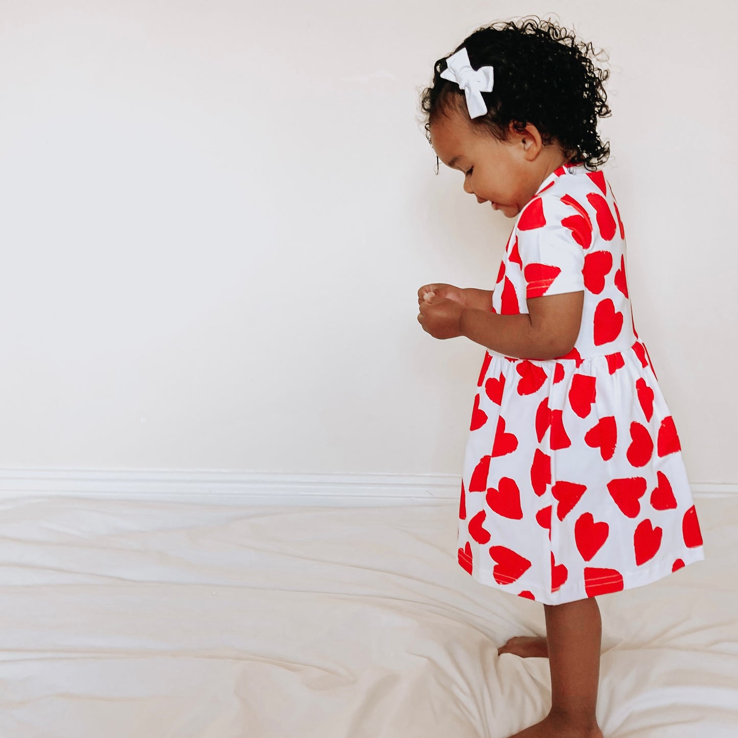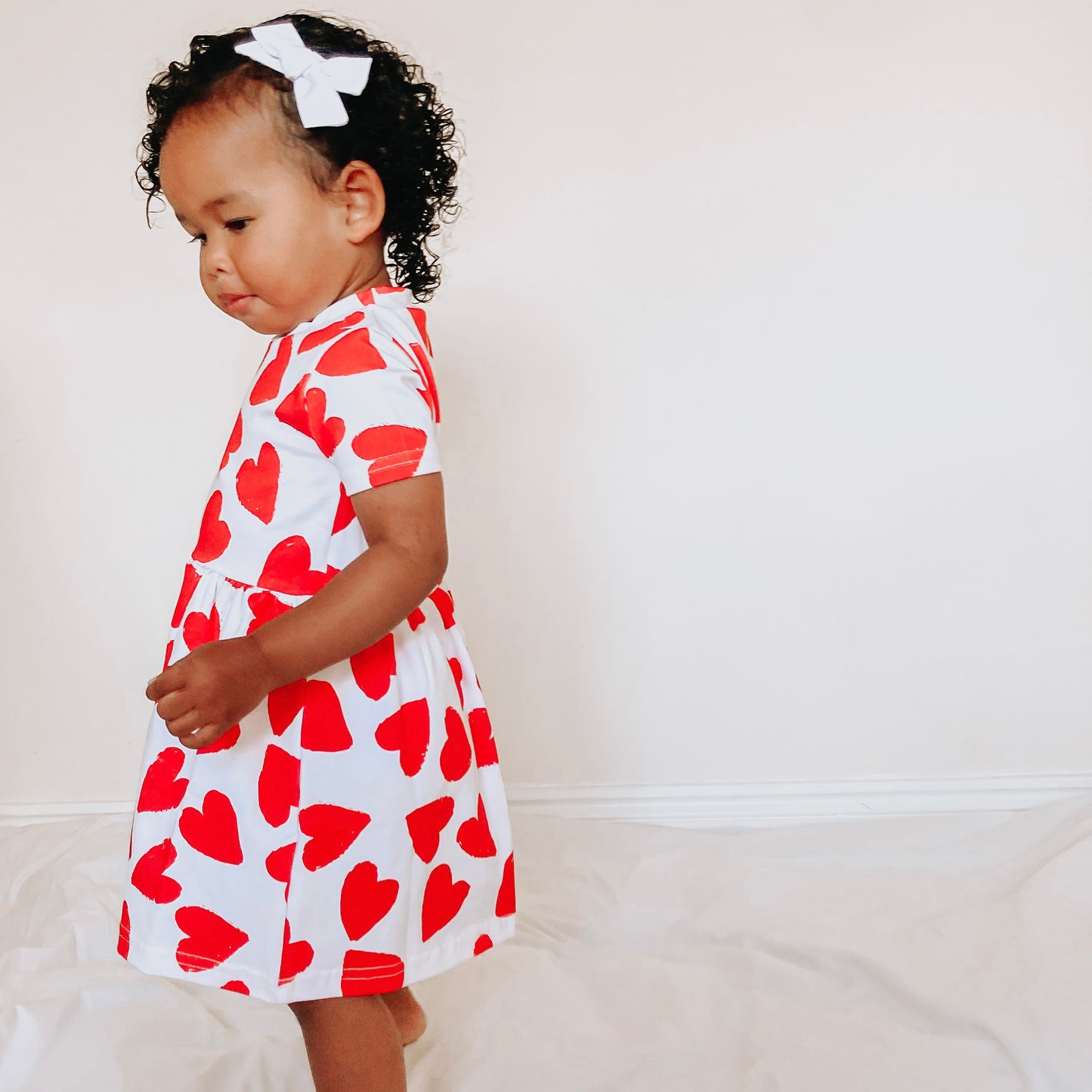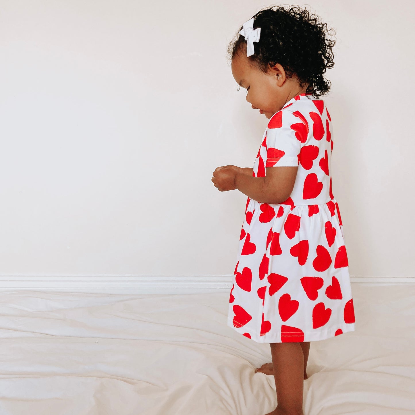 Regular price £18.00Our Love heart print dress is made in the UK from 95% Cotton 5 % Elastane Jersey.