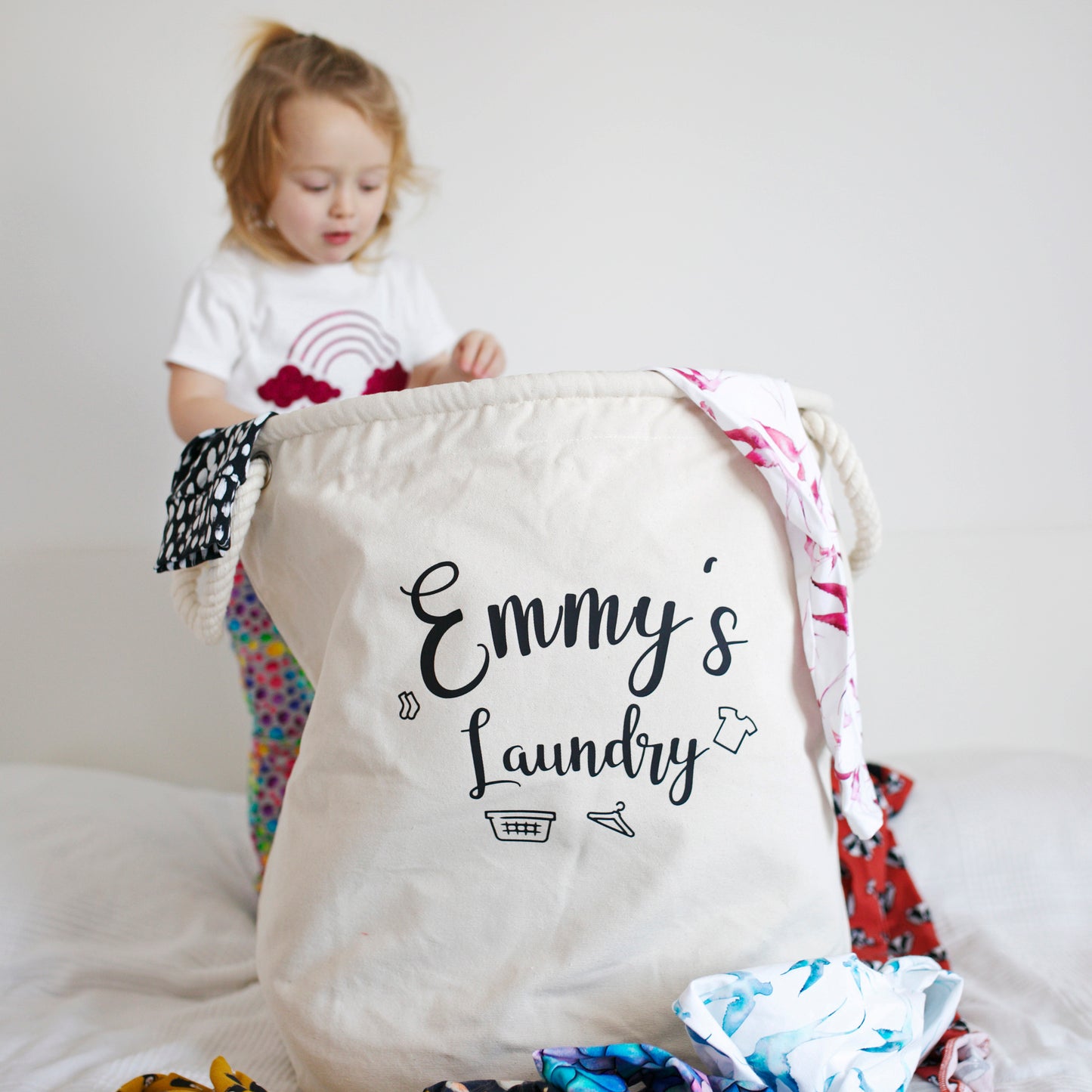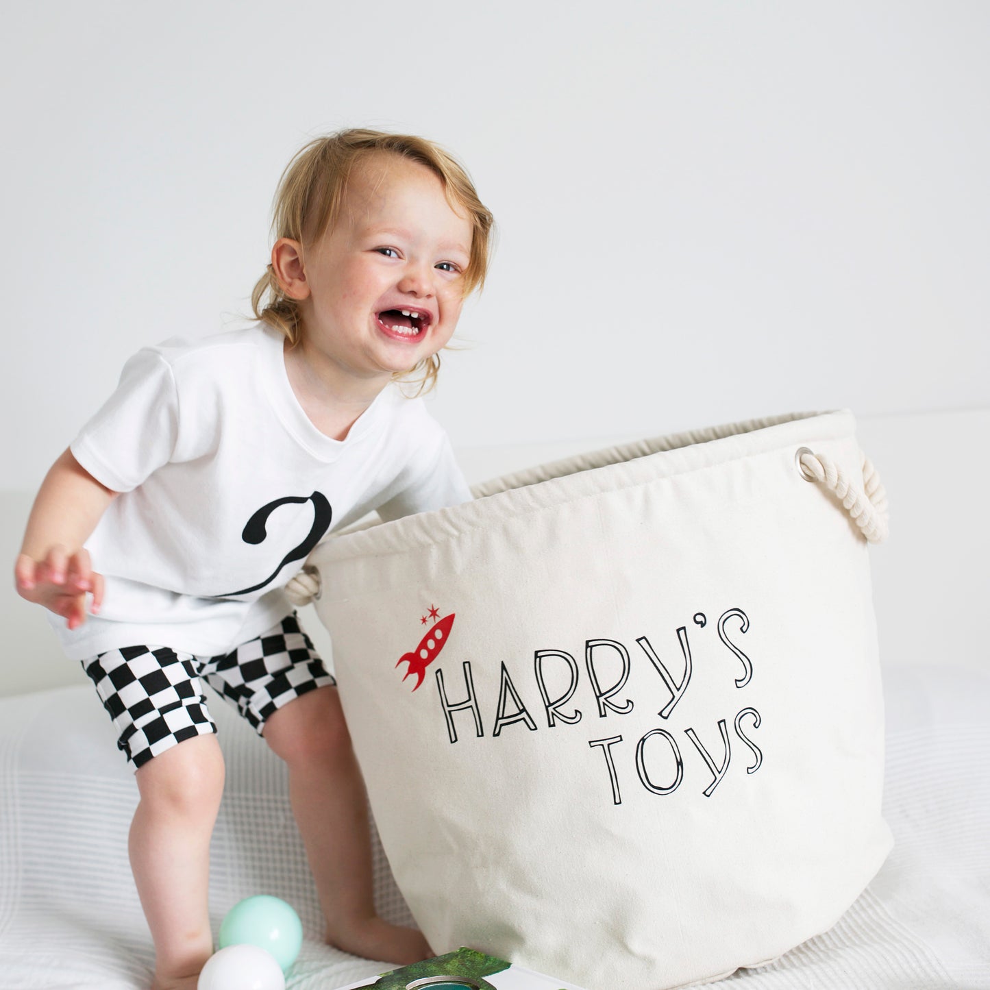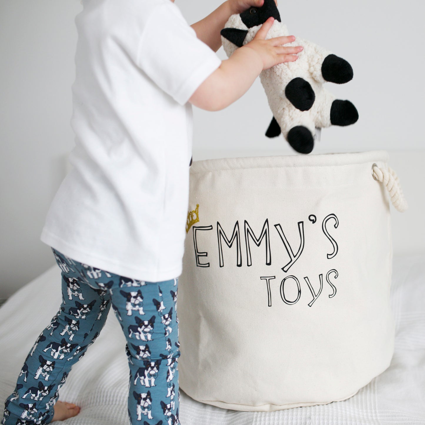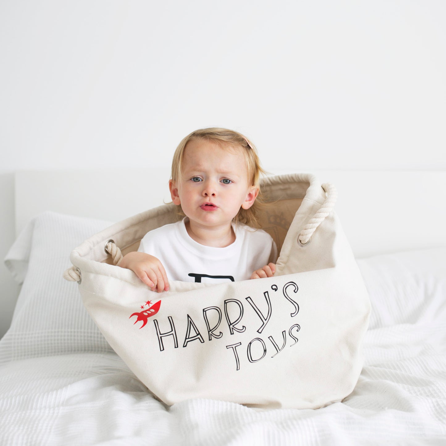 Our personalised cotton storage baskets are perfect for keeping children's toys in one place, their laundry off their floor or even all the family shoes neat and tidy.