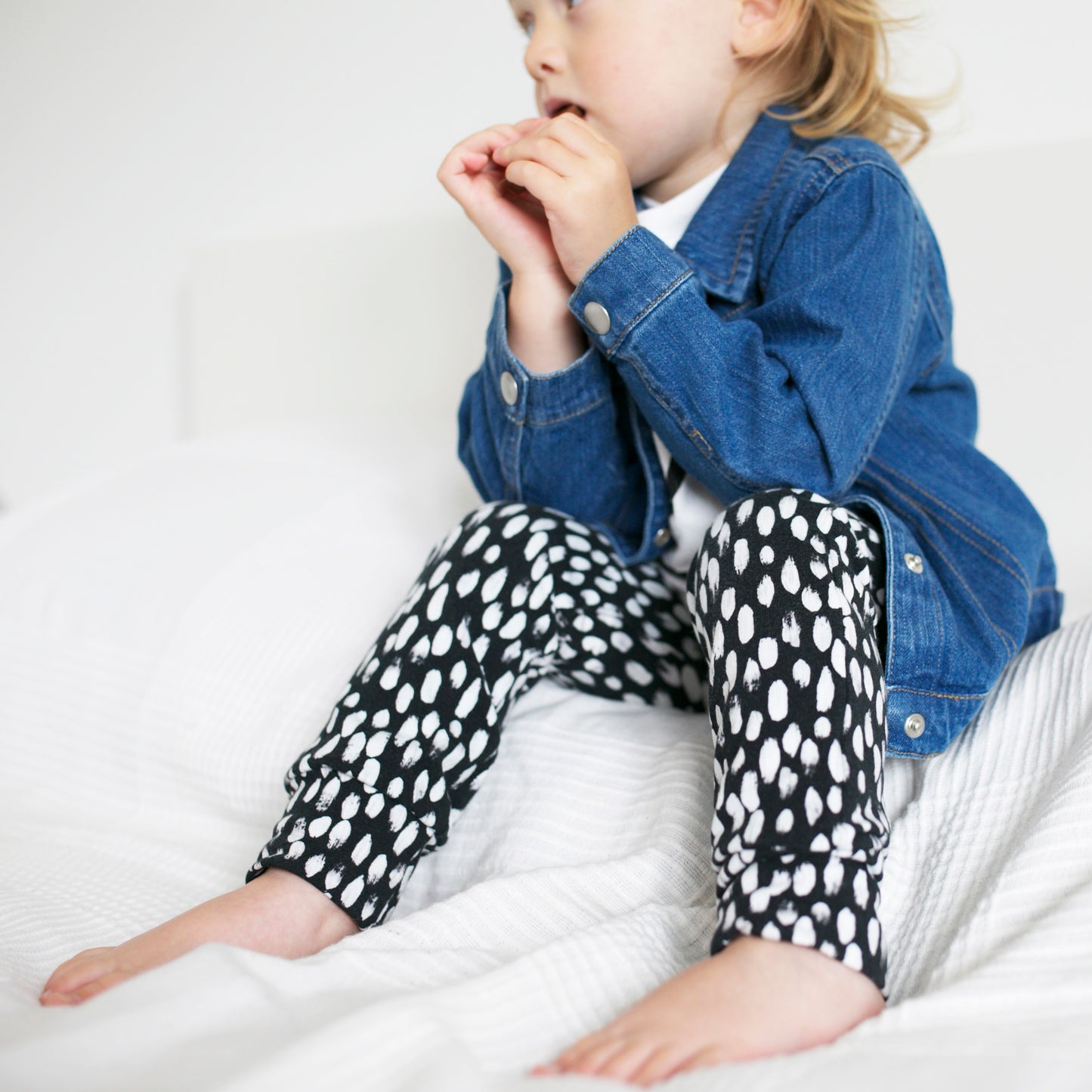 Sizes 4-5 and 5-6 are a different cut to our baby and toddler leggings with no side seam on the legs.