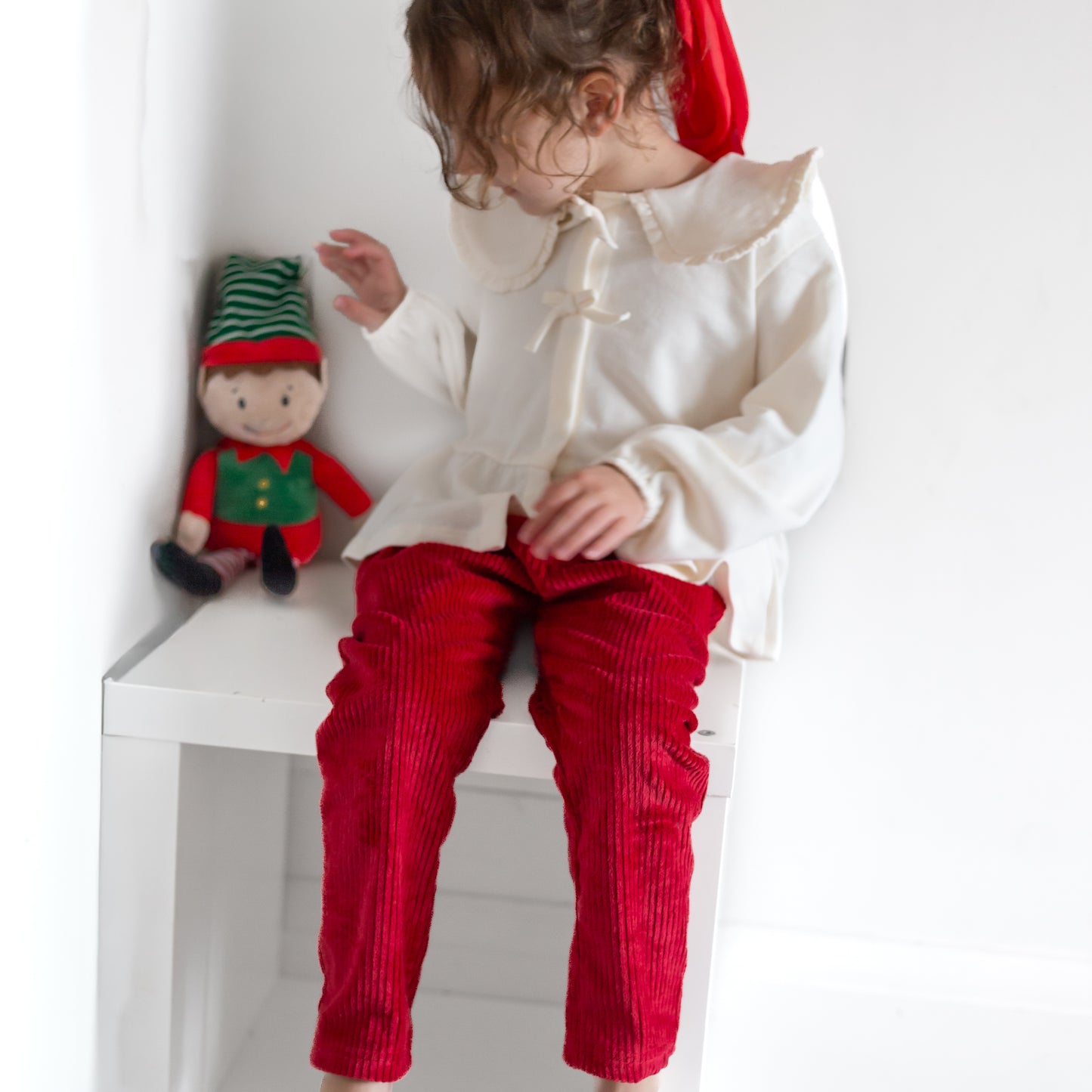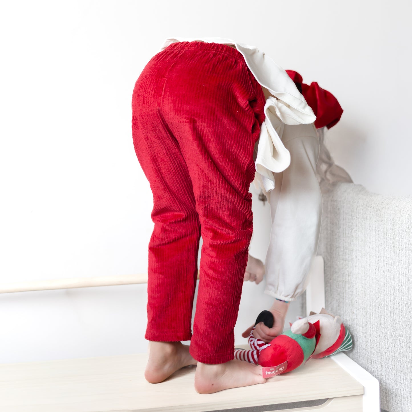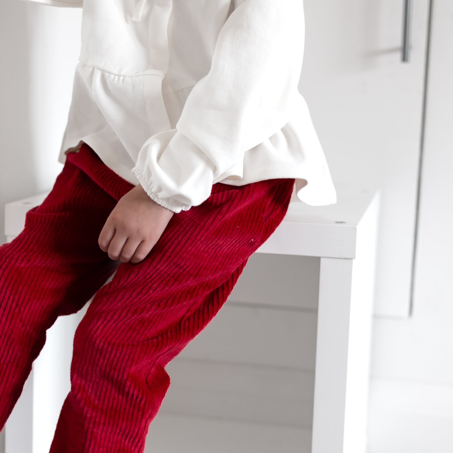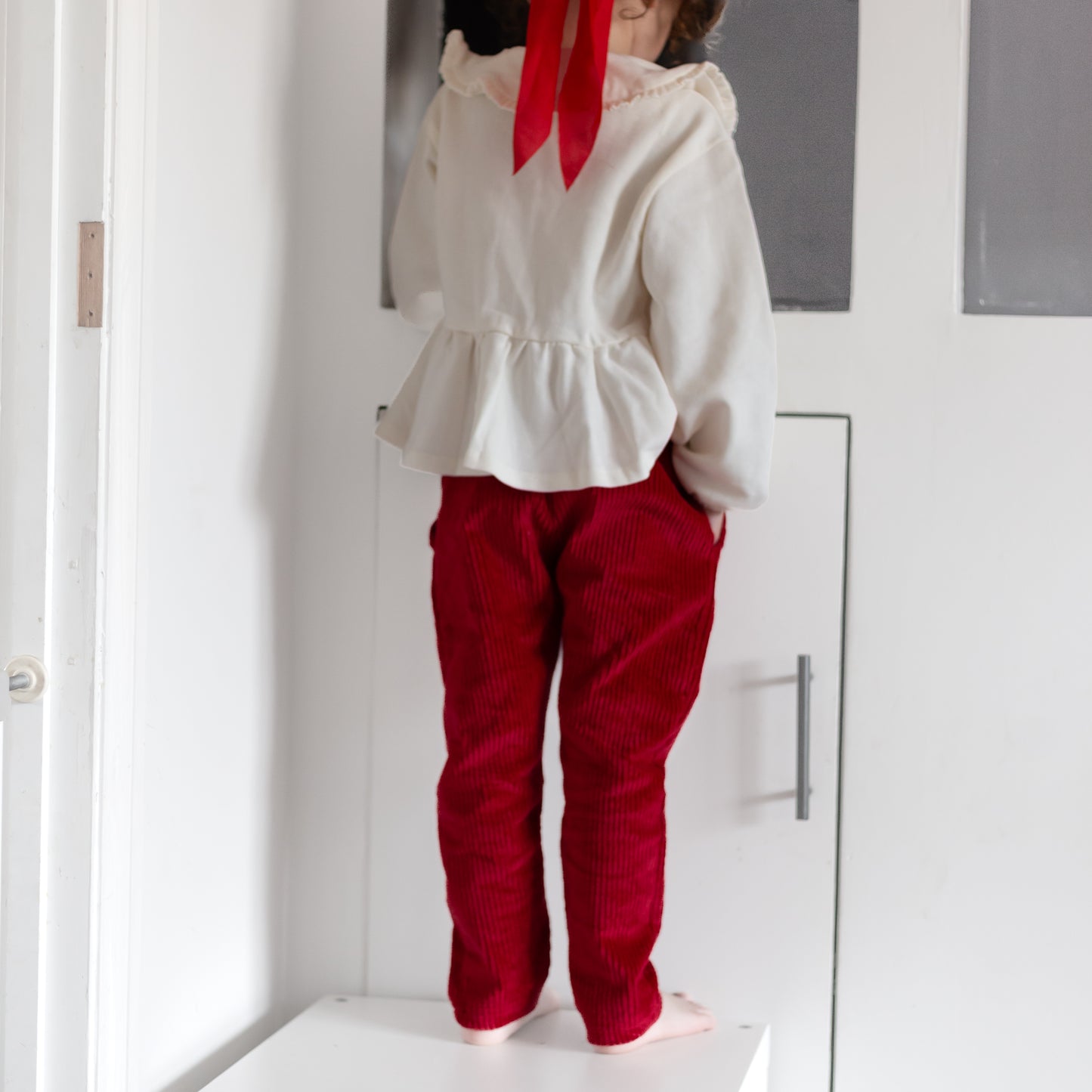 Featuring pockets on each side (perfect for collecting things on their adventures) our trousers have an comfy elasticated waist and a finished cover-stitched hem - although we love rolling them up for a relaxed vibe)