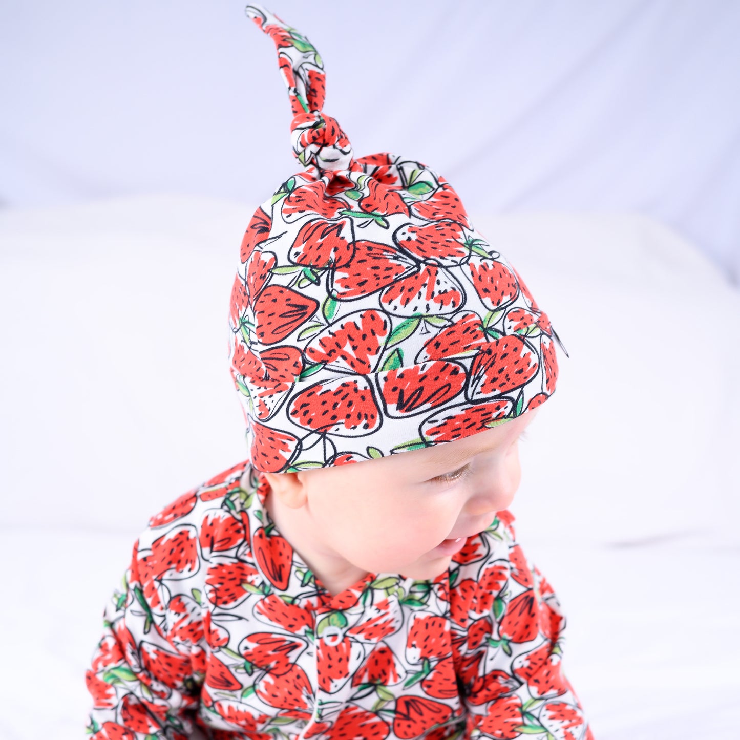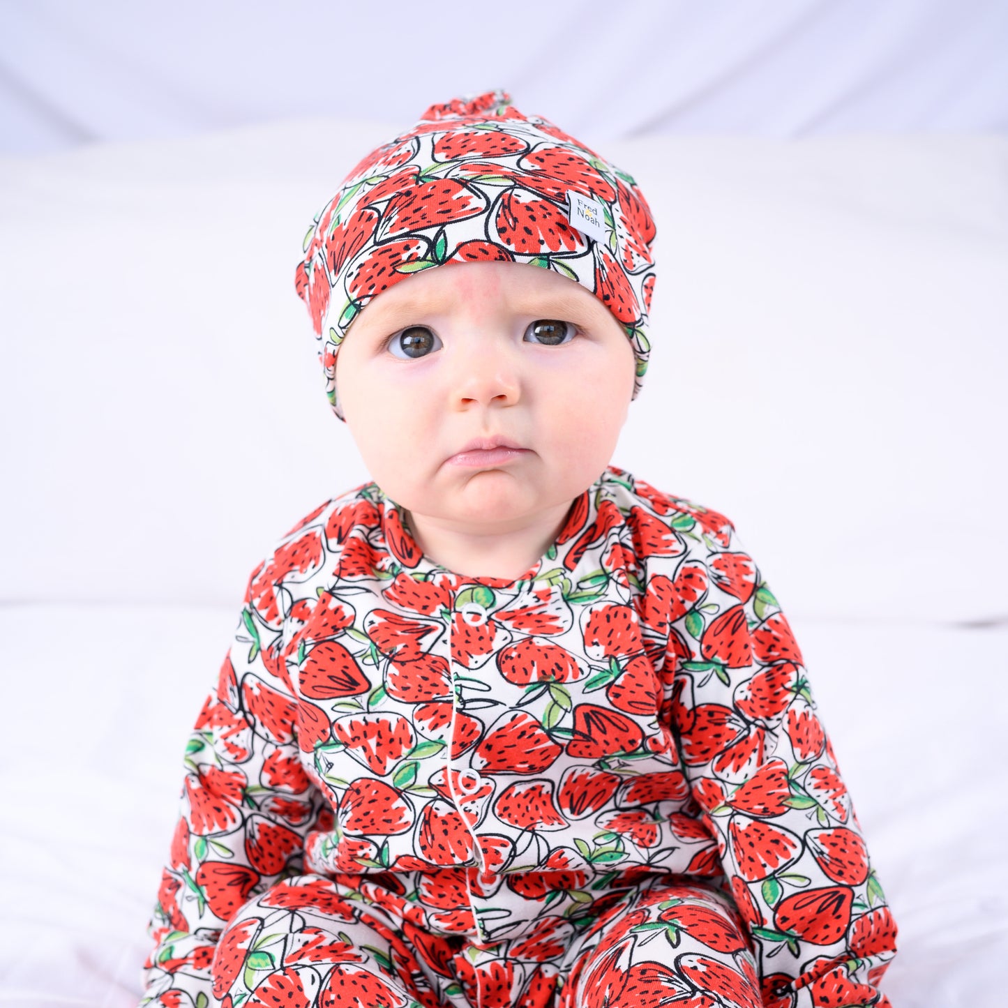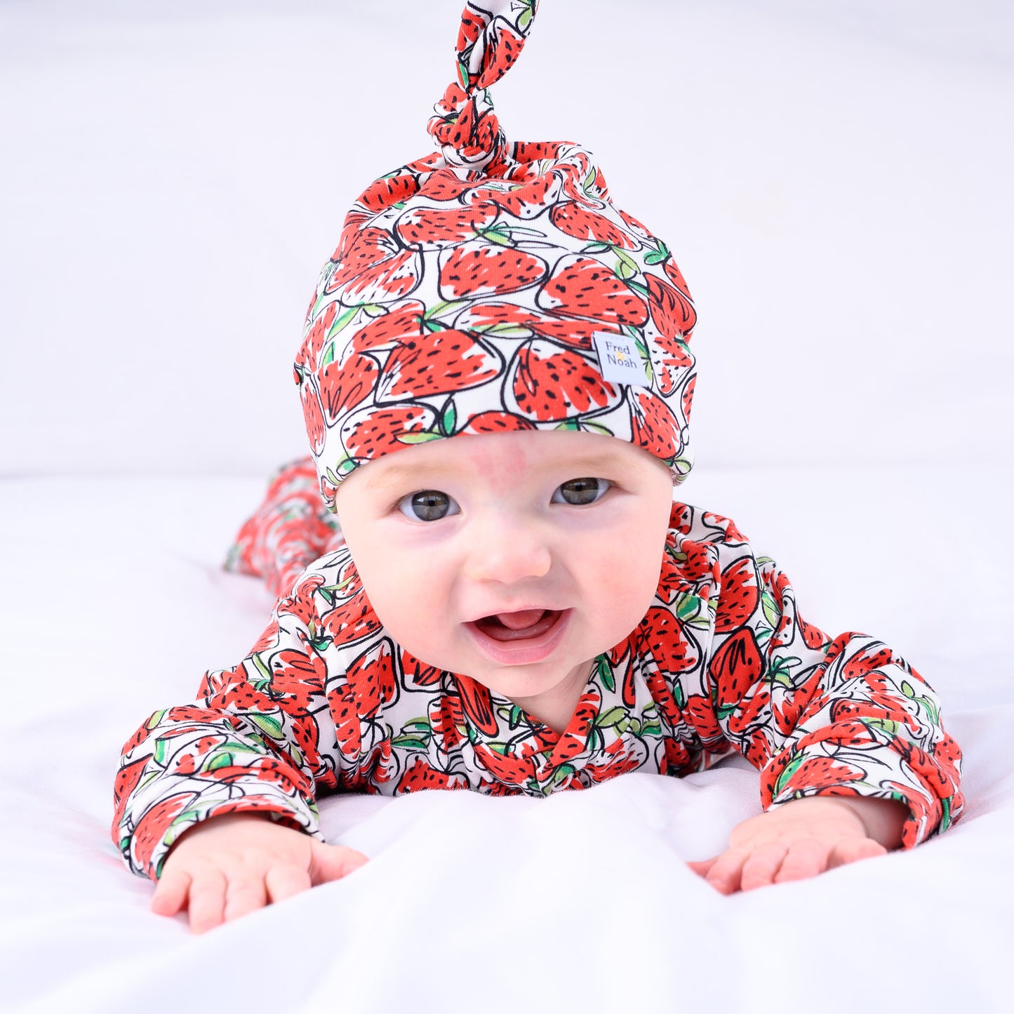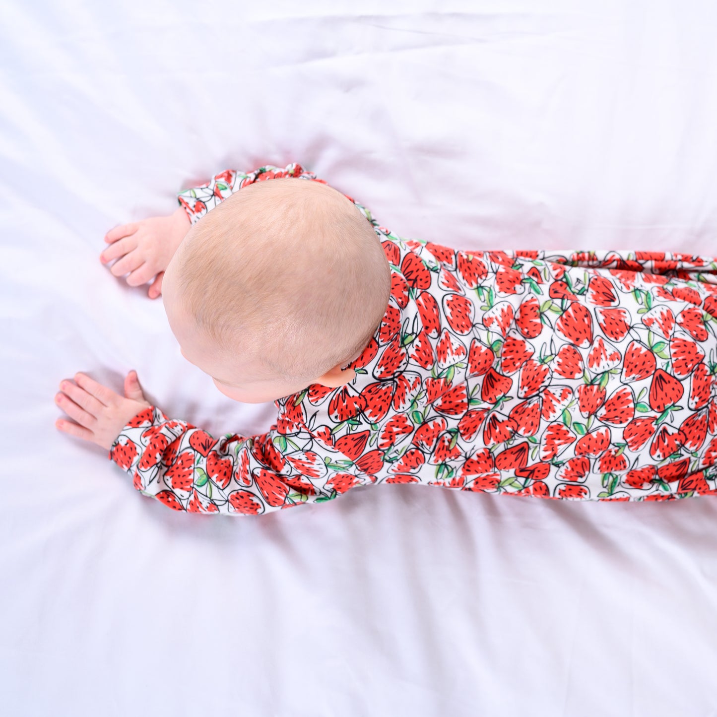 Our new Strawberry print sleepsuit is the perfect one-piece for any baby.