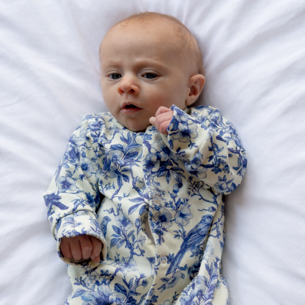 Our new and gorgeous Willow print sleep suit is the perfect one-piece for any baby.