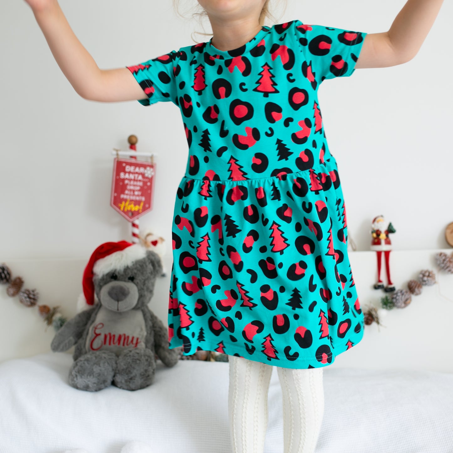 Regular price £15.00Our Xmas Leopard print dress is made in the UK from 95% Cotton and 5 % Elastane Jersey.