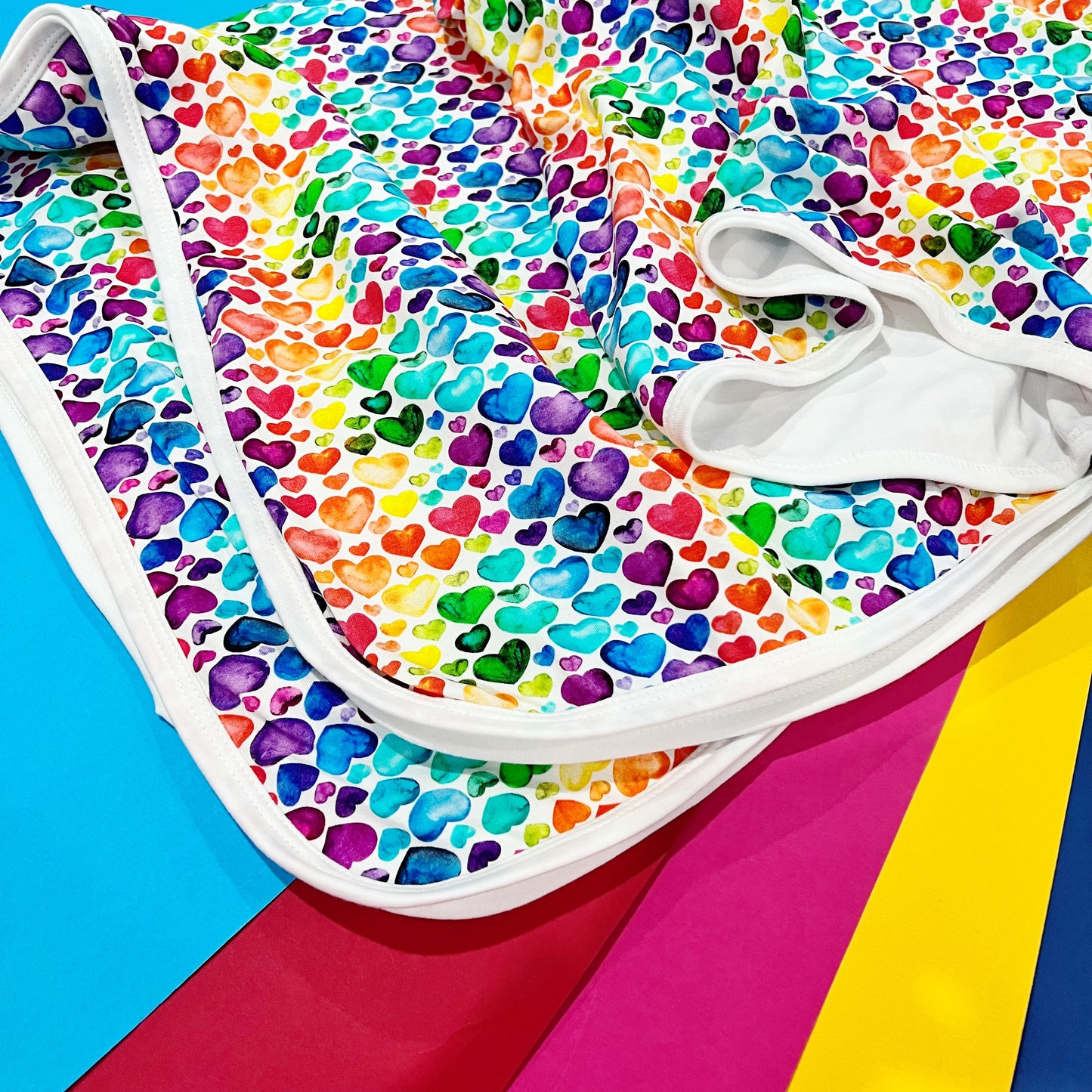 Our Xxl rainbow heart blanket is made from super soft cotton and incredibly soft and kind to babies skin.