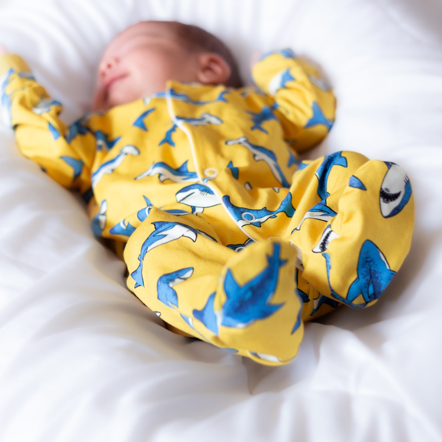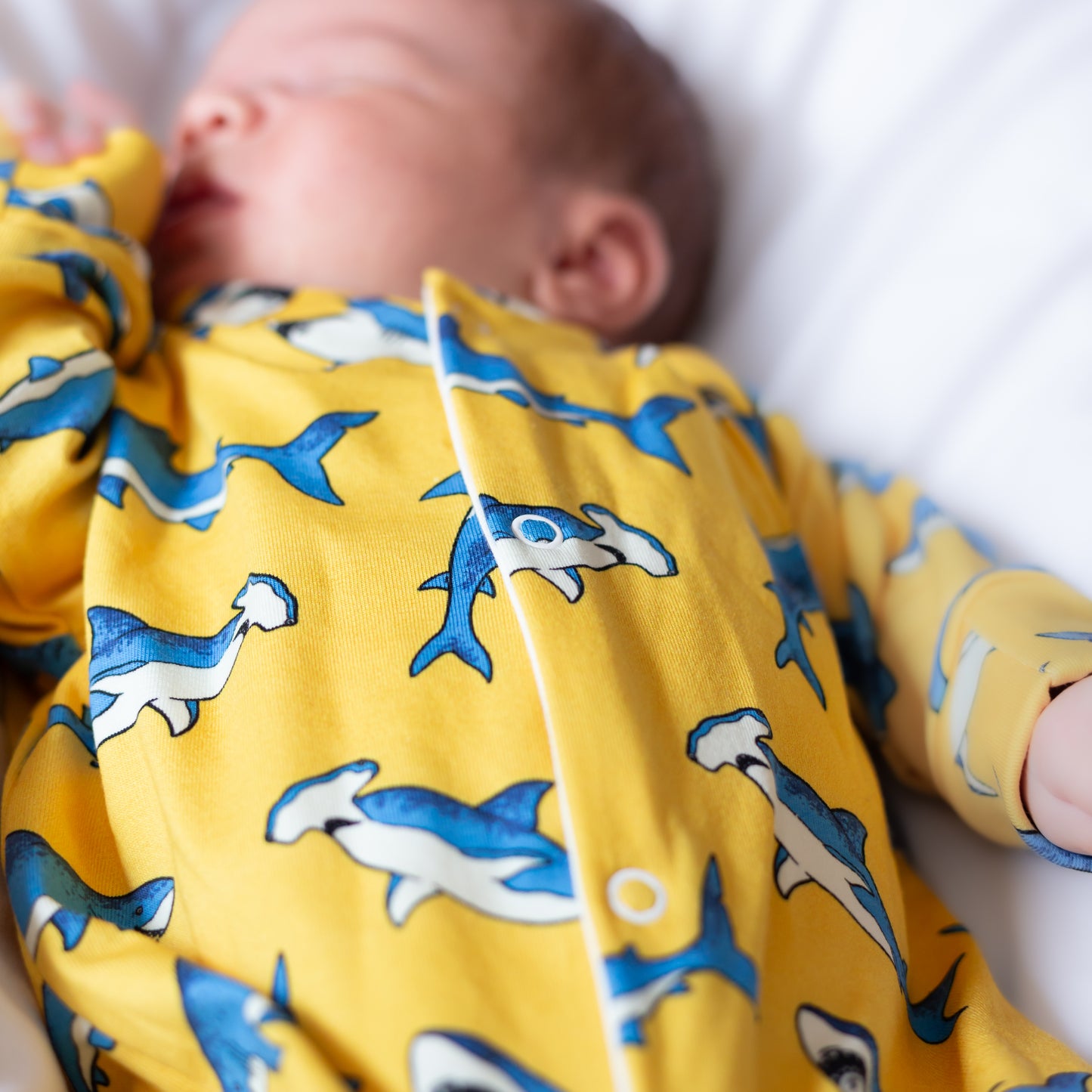 Our new and gorgeous Shark sleep suit is the perfect one-piece for any baby.