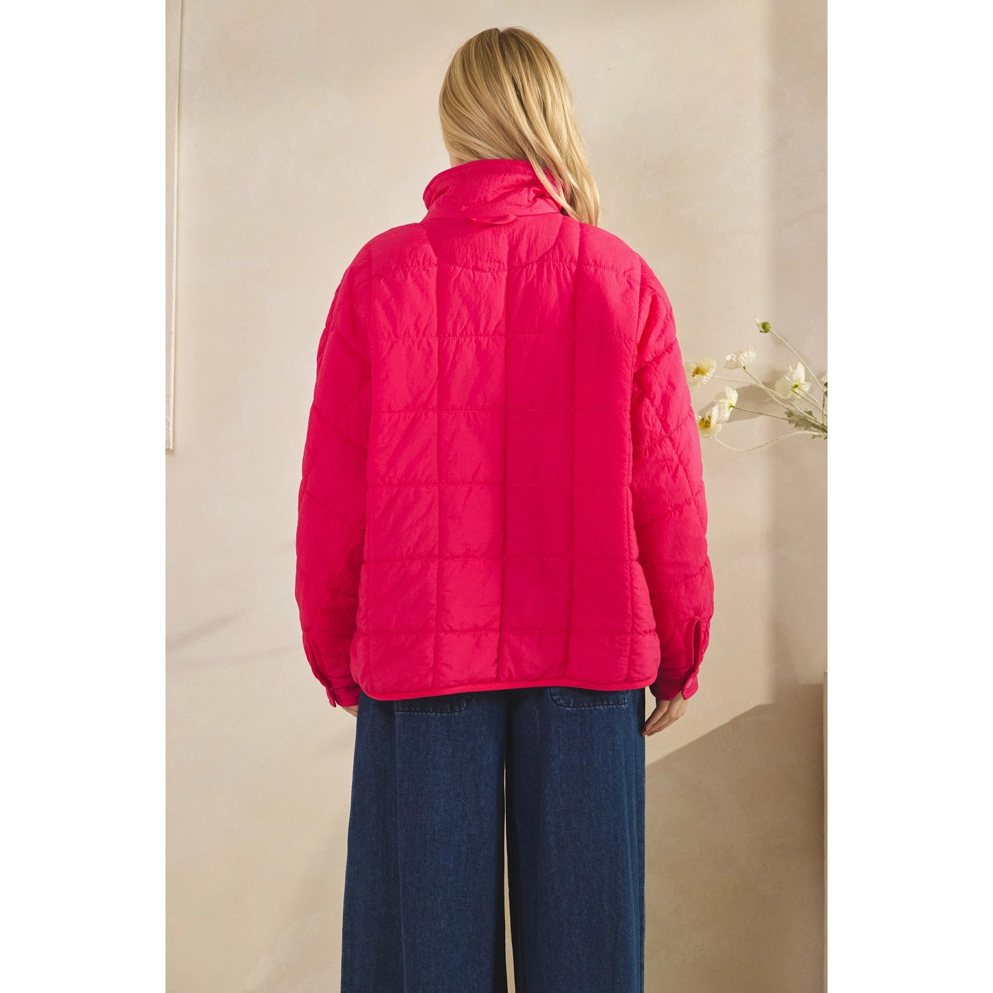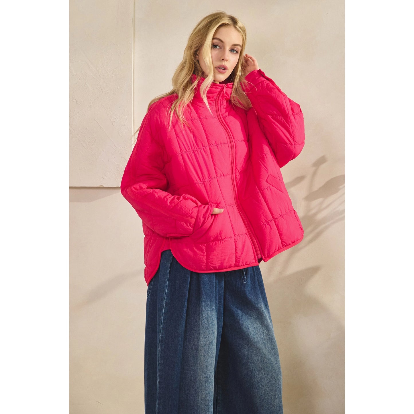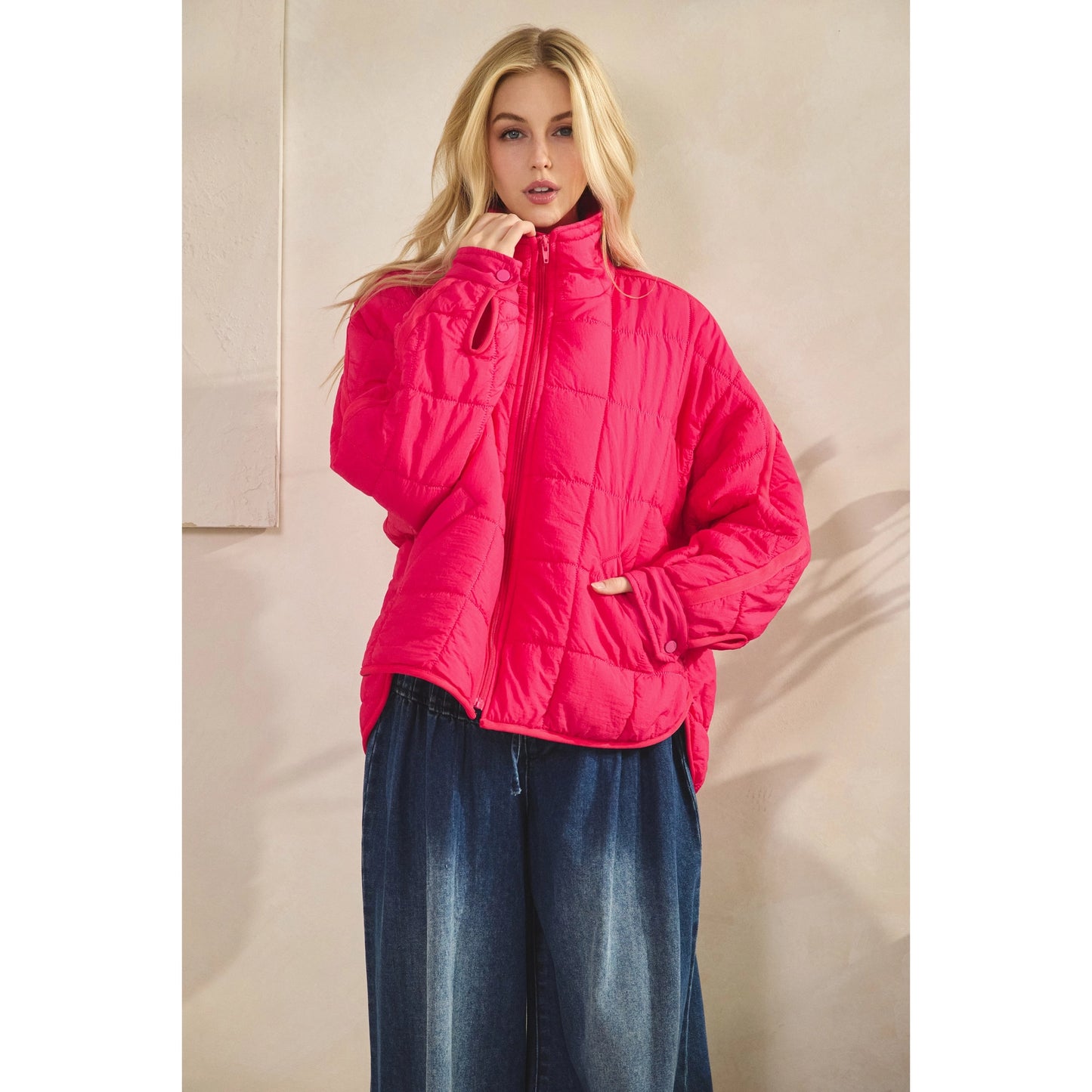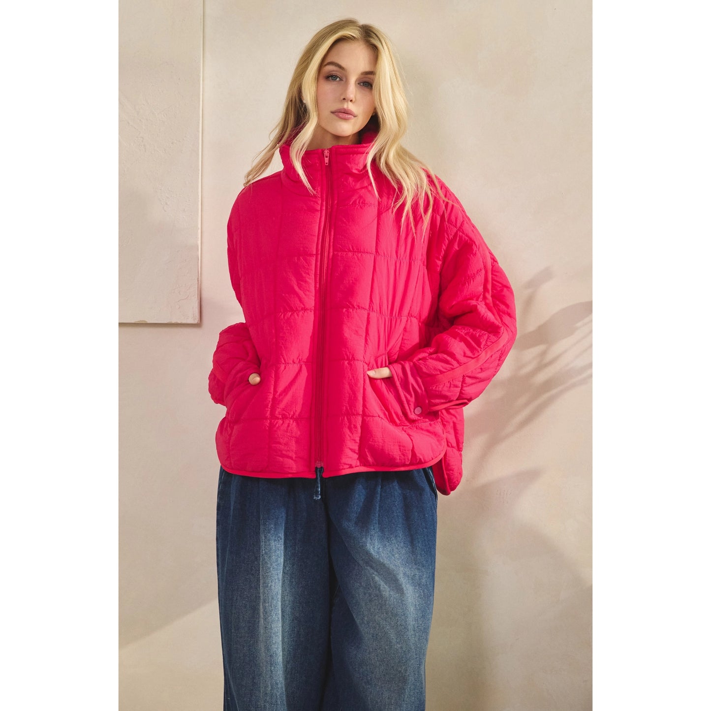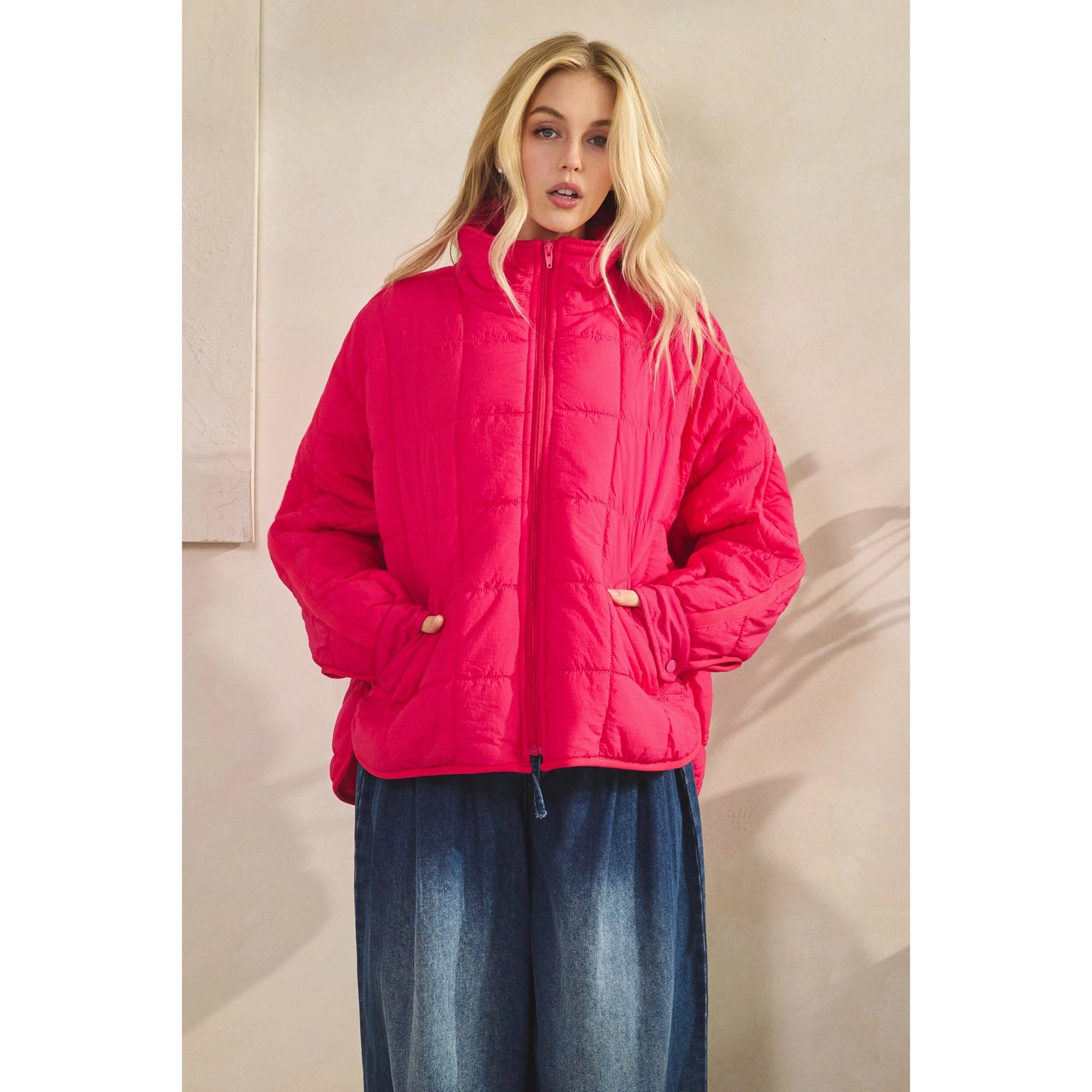 Zip Up Packable Puffer Jacket - Fuchsia